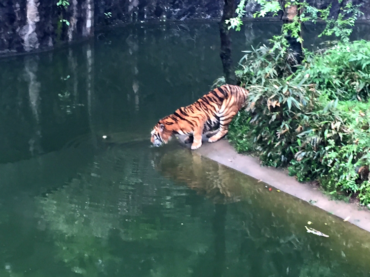 虎跑附近的动物园,无意拍到了老虎喝水,感觉很兴奋