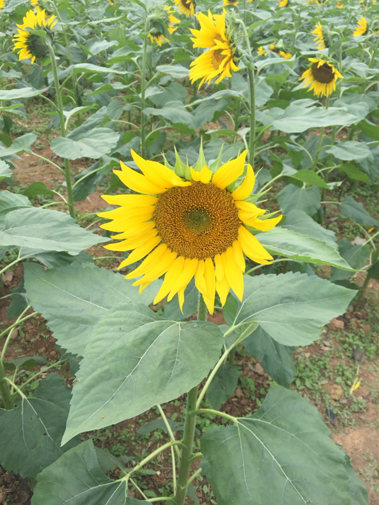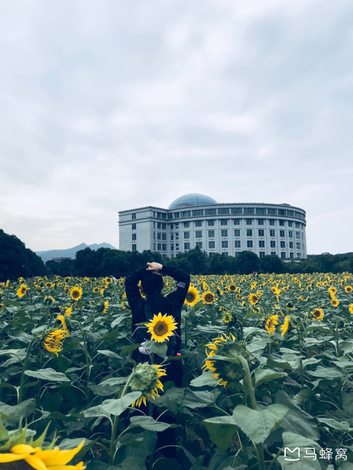 这是我在学校里拍的,学校在小和山,山朦胧,向日葵刚开,这是我第一次见到这么多向日葵,就记录下来了