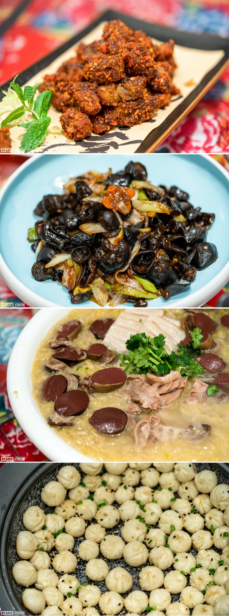 桌上的铁锅原来就是用来煮铁锅炖的,这么大一锅,是在霸气。大厨捧着一个大鱼头进来,加入丰盛的食材,看得人都直流口水,巴不得马上开吃。可是铁锅炖加入食材后,需要煮45分钟左右才能享用,那么这段漫长的时间确实让人煎熬。但不怕,还有非常多 东北 特色菜等着我们呢!
