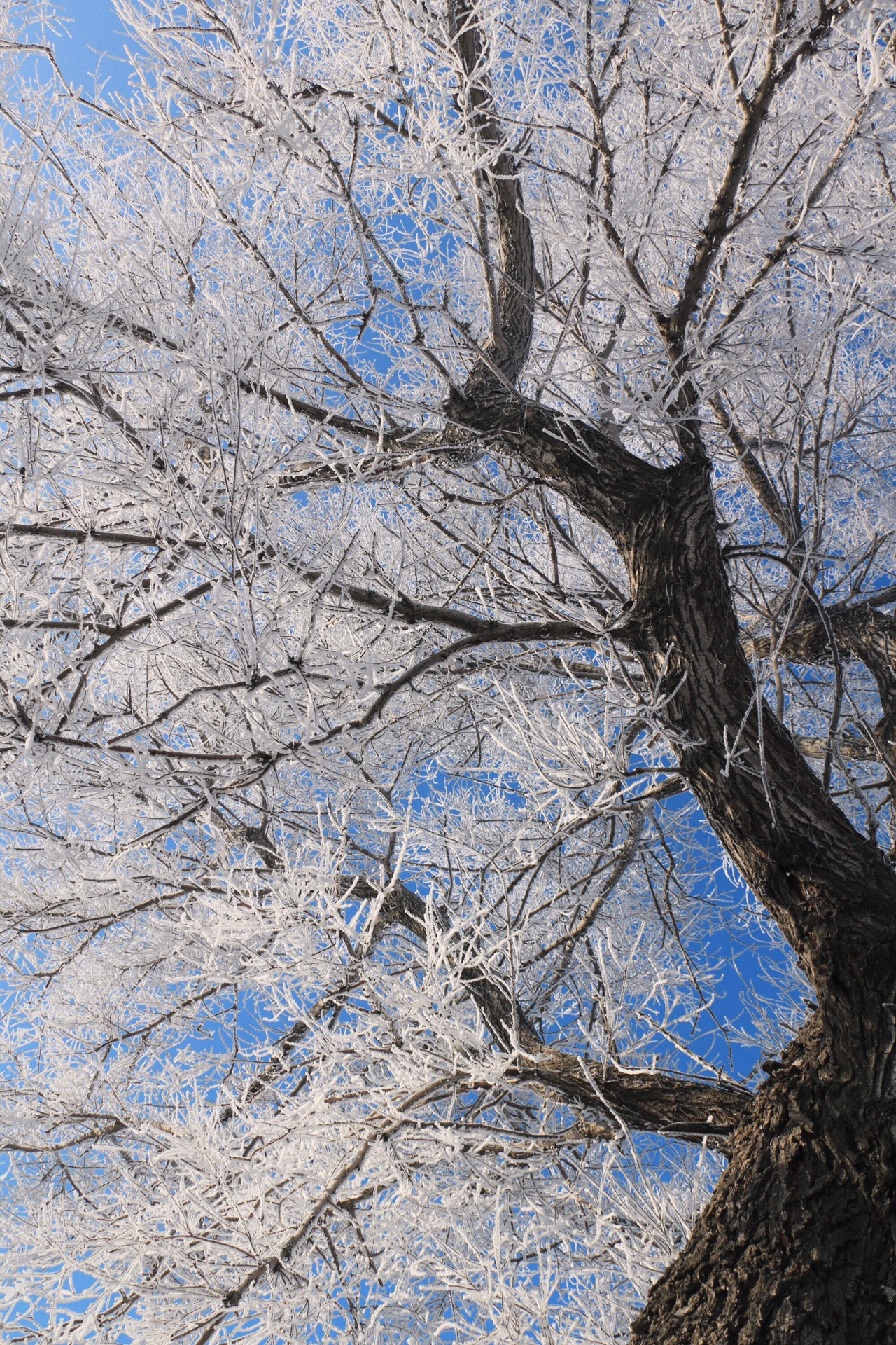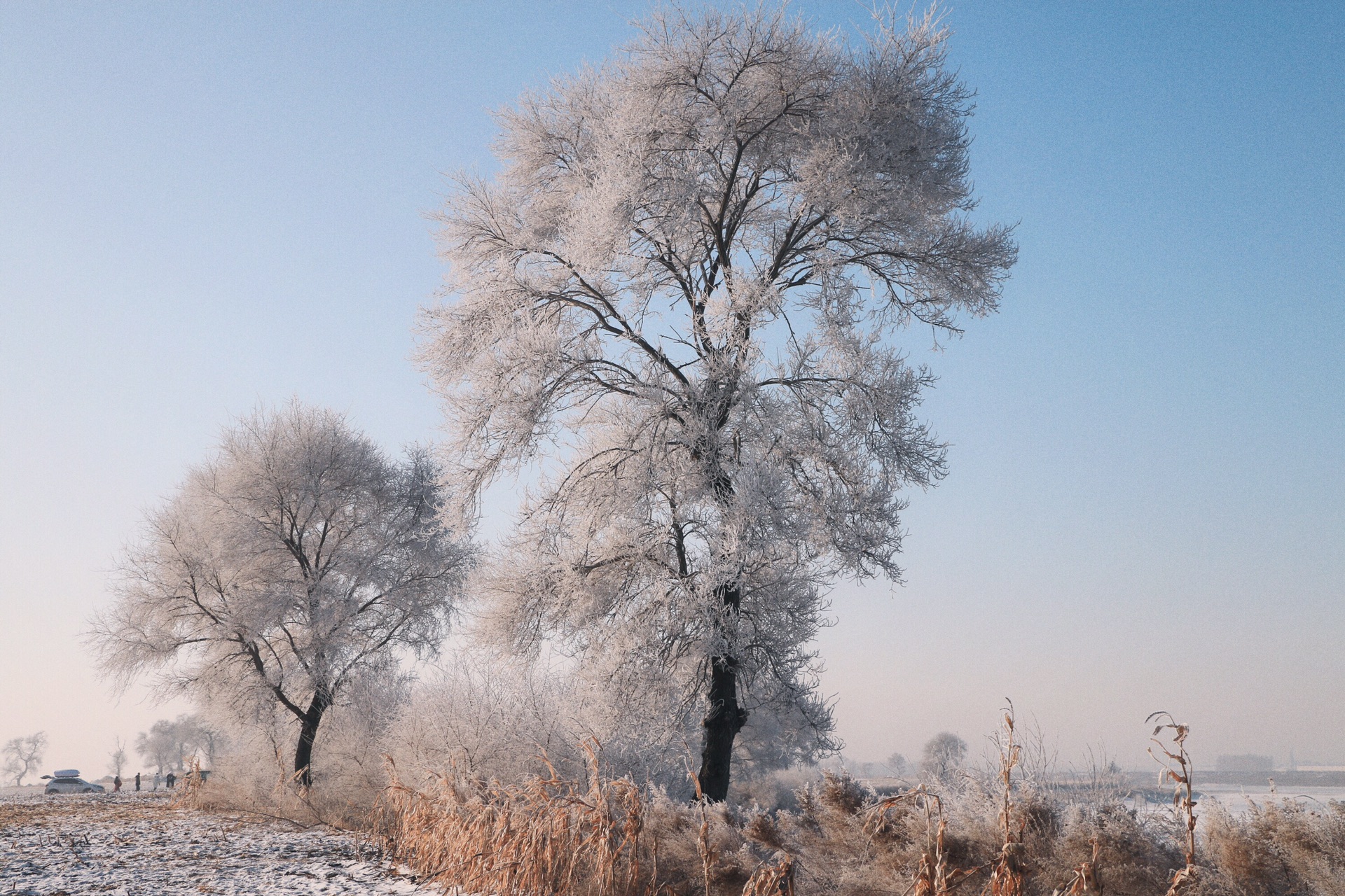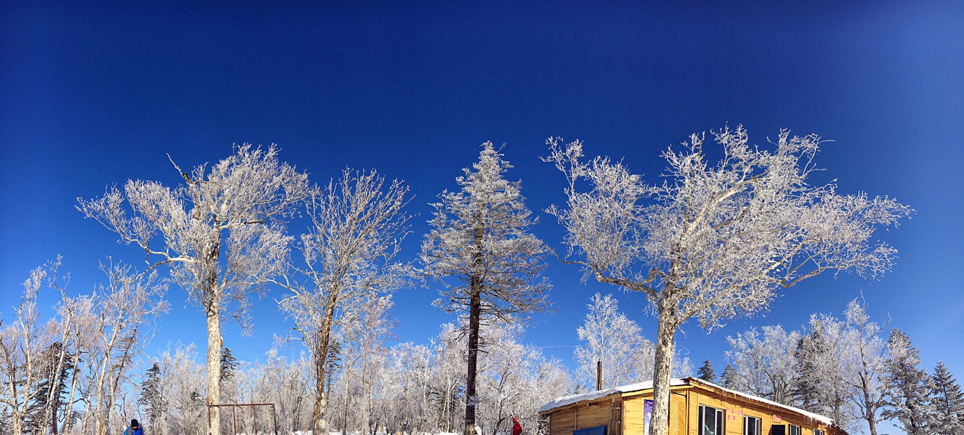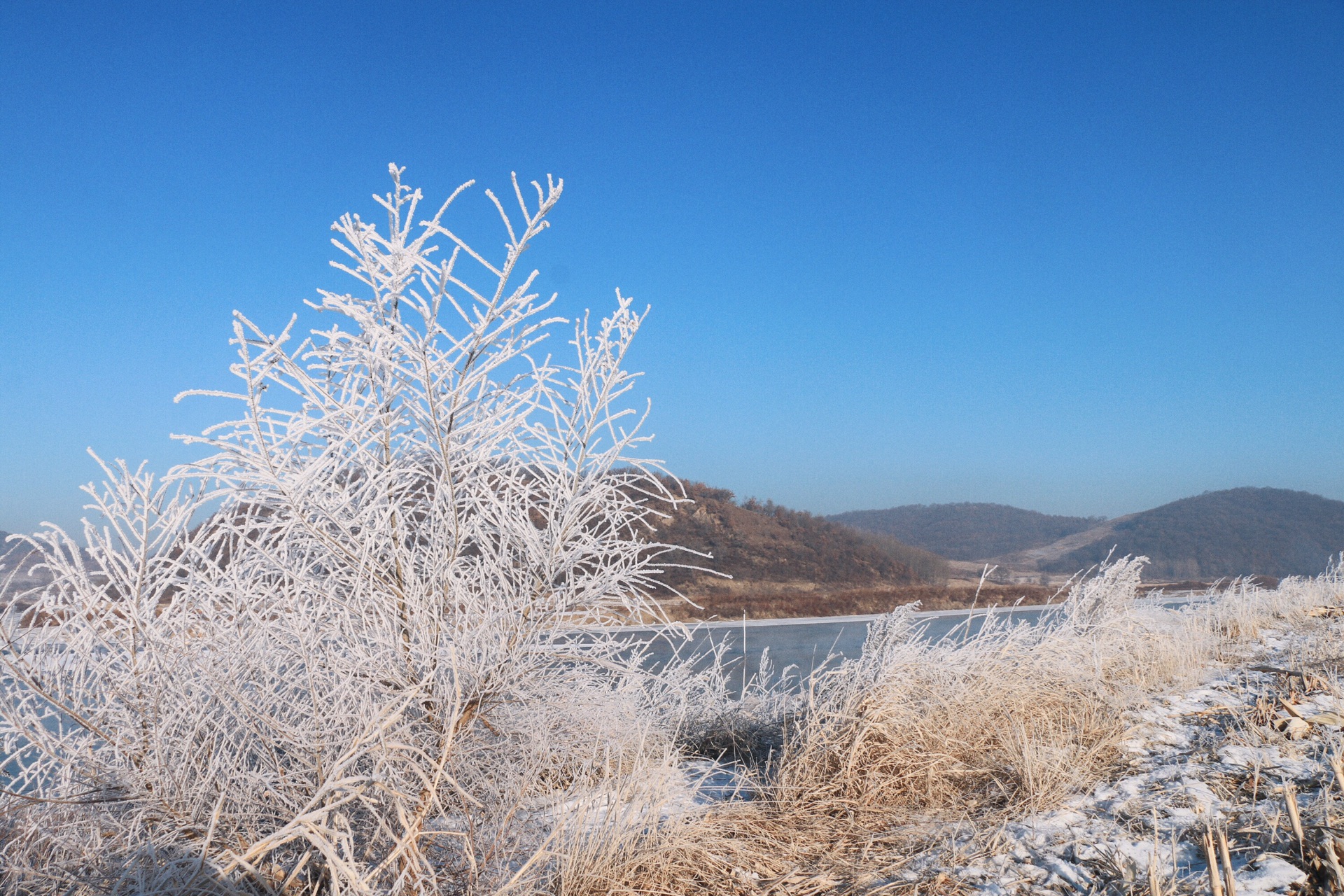 雾凇岛果不其然,这里隐藏着真正的雾凇,乳白色的冰晶高挂在树枝上,配着蓝蓝的天空,显得格外漂亮~~