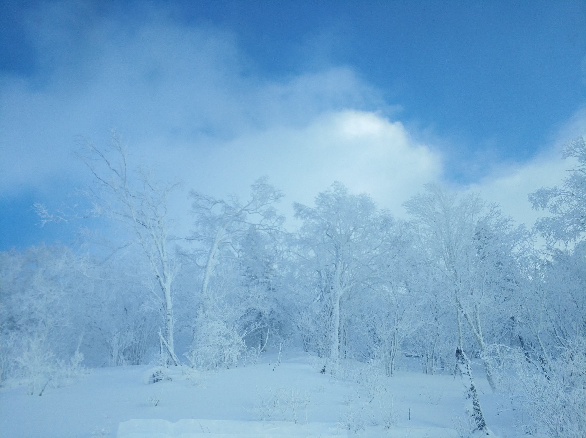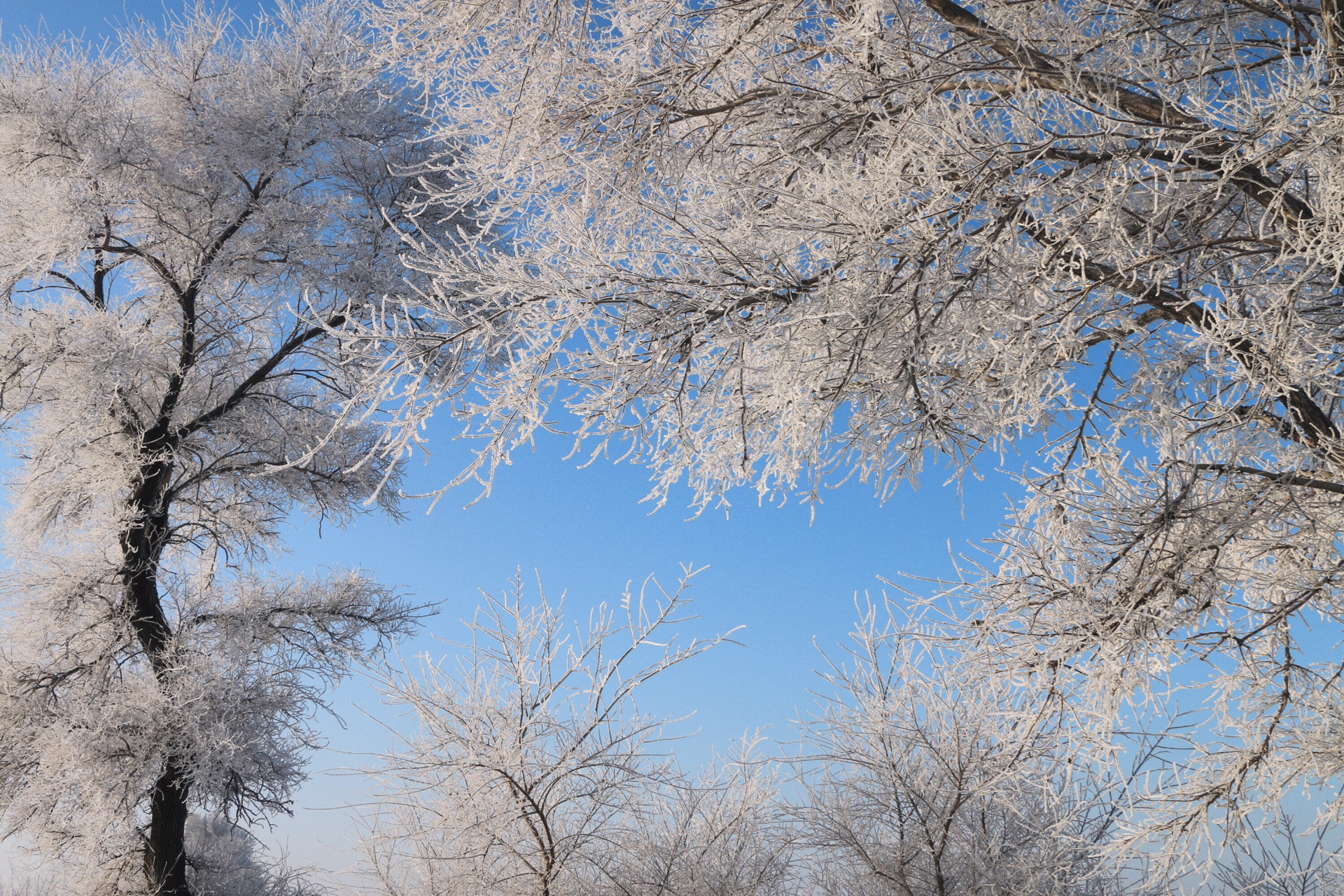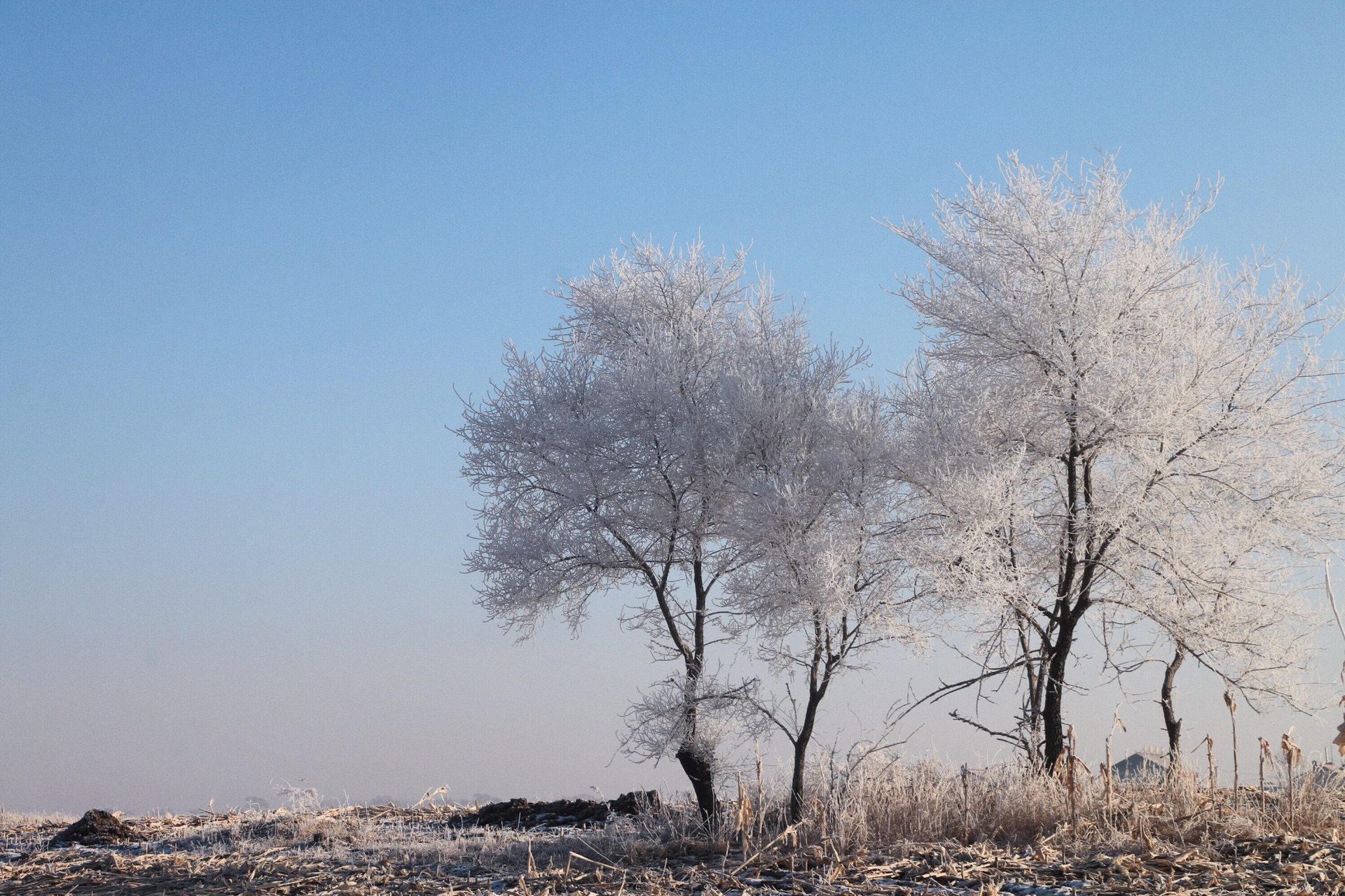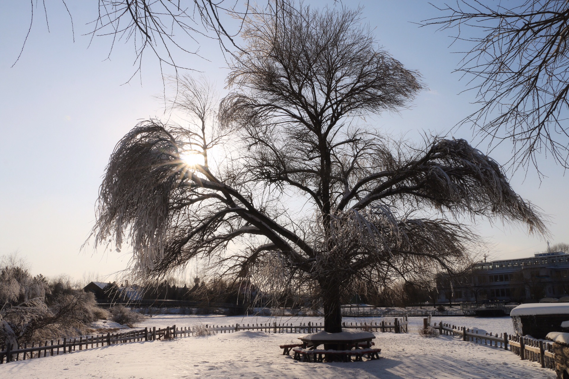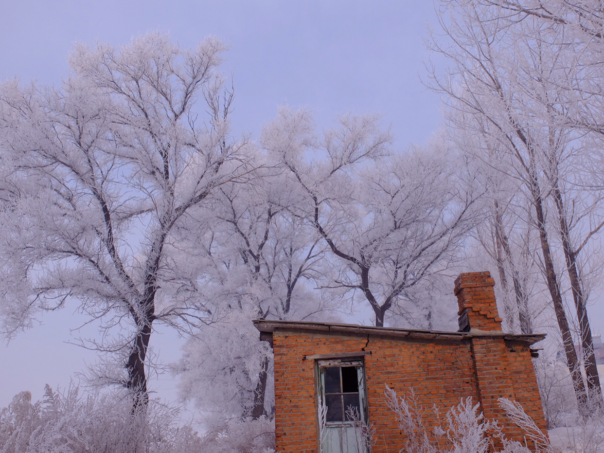 雾凇岛果不其然,这里隐藏着真正的雾凇,乳白色的冰晶高挂在树枝上,配着蓝蓝的天空,显得格外漂亮~~