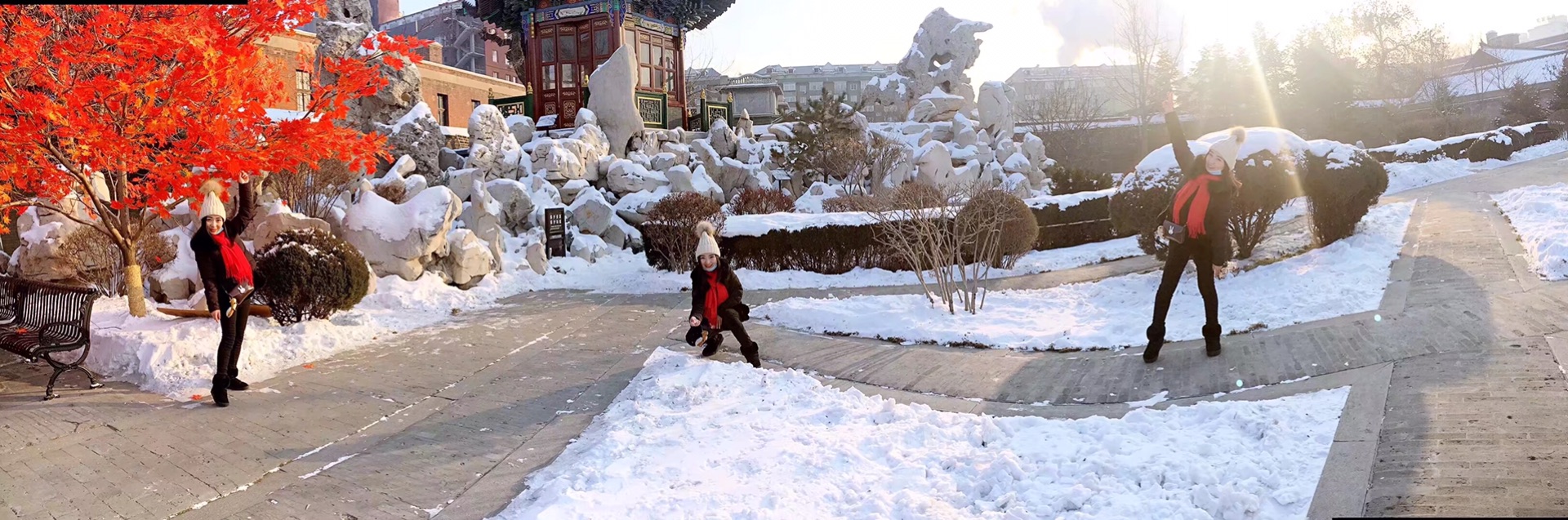 两个冻傻也要拍照的逗逼然后我们本来还打算去一个比较偏的跟 上海 的1933老工坊差不多的一个地方,但北方天暗的早,我们最后还是选择吃餐好的🤗 就回到了我们住的附近那个大悦城,室内逛逛吃吃比较适合我们这种懒人,哈哈哈哈哈~