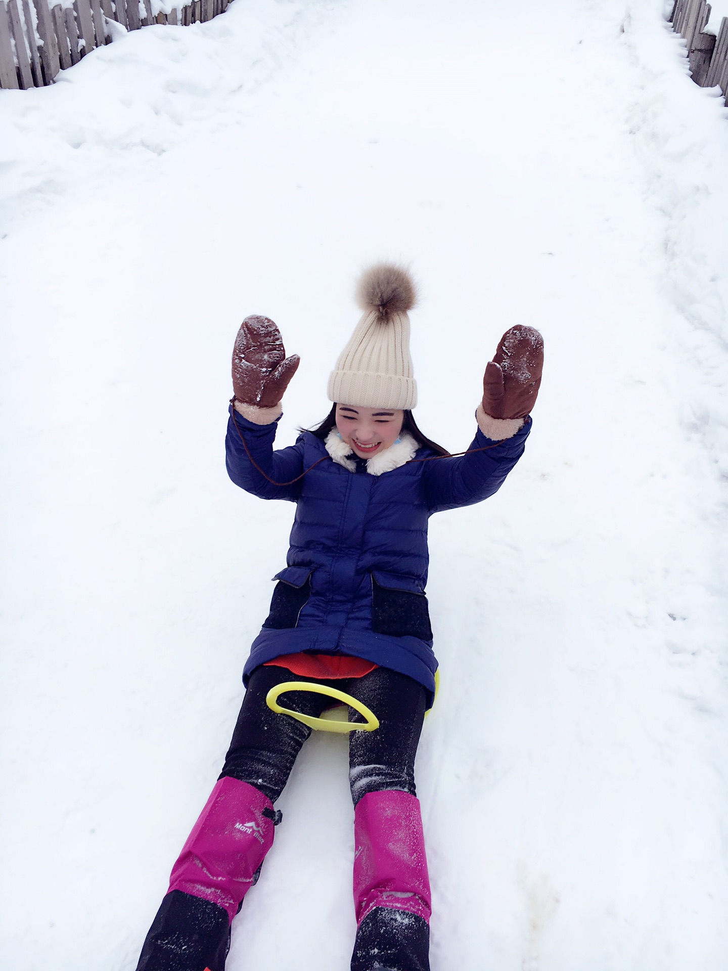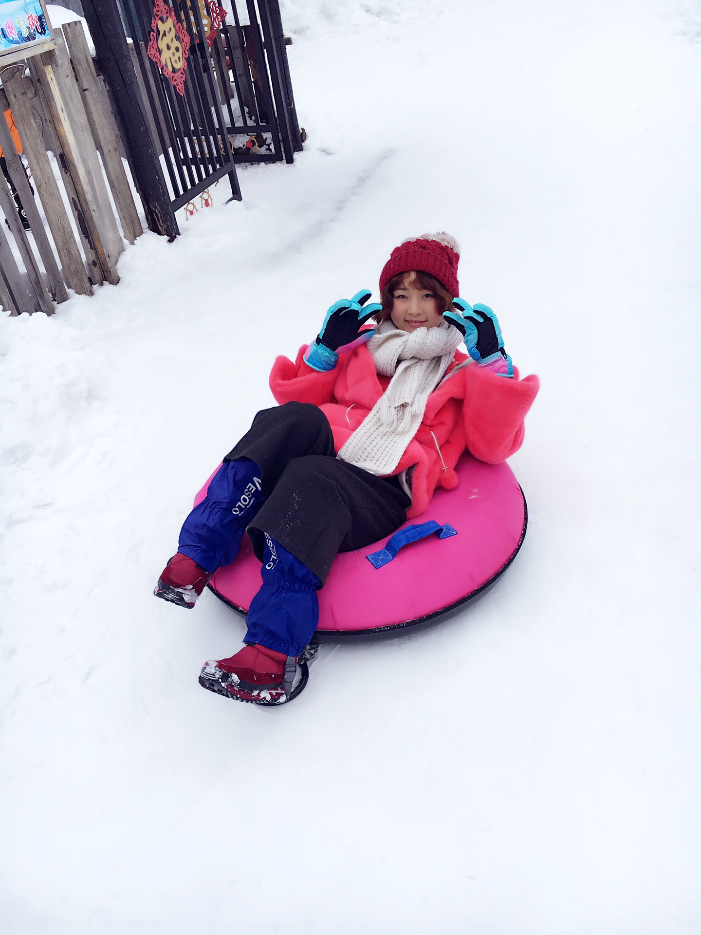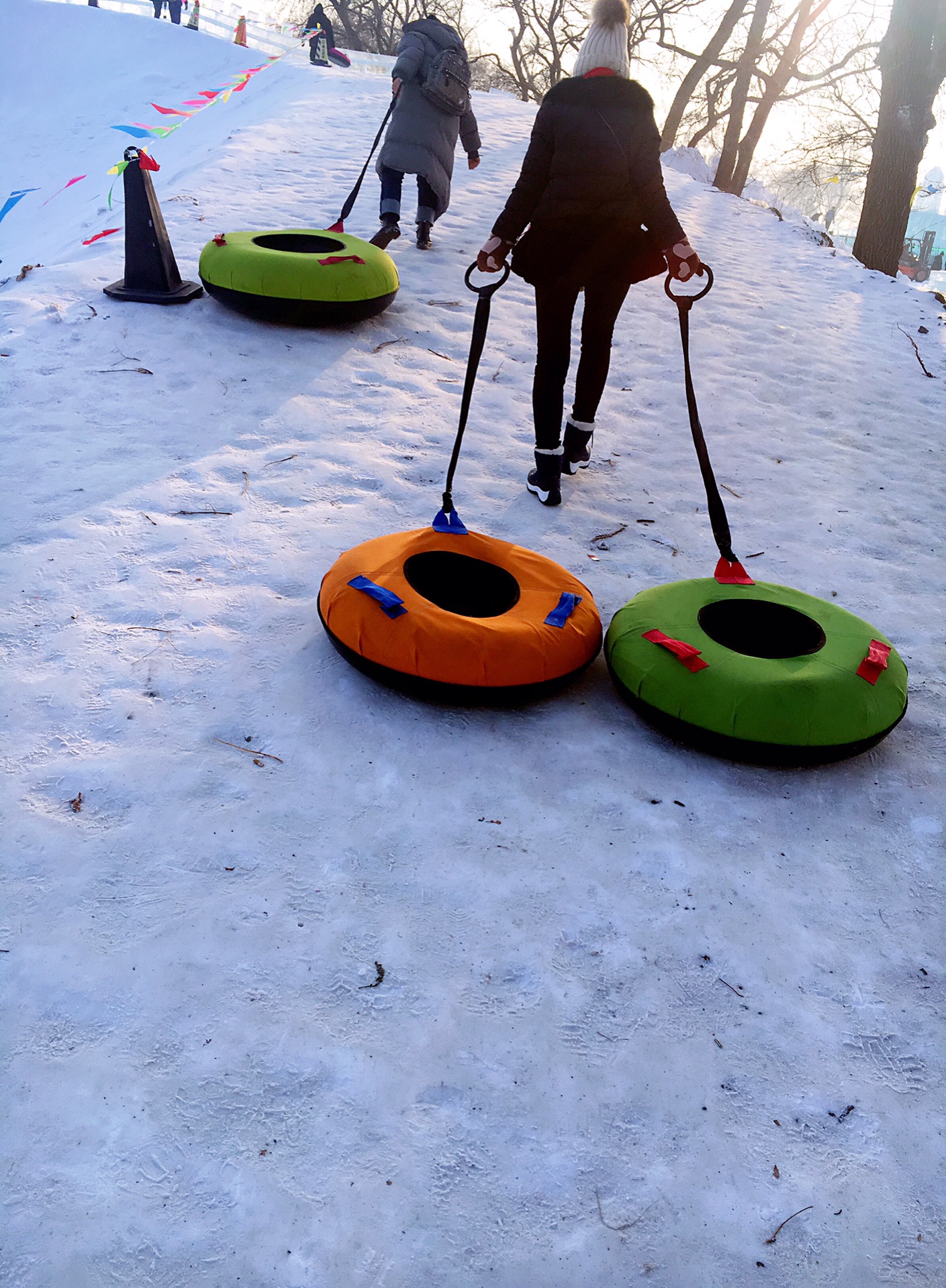 这个超好玩,叫雪圈,很高的坡度一下子冲下去,开始我不敢,玩了一次我上瘾了