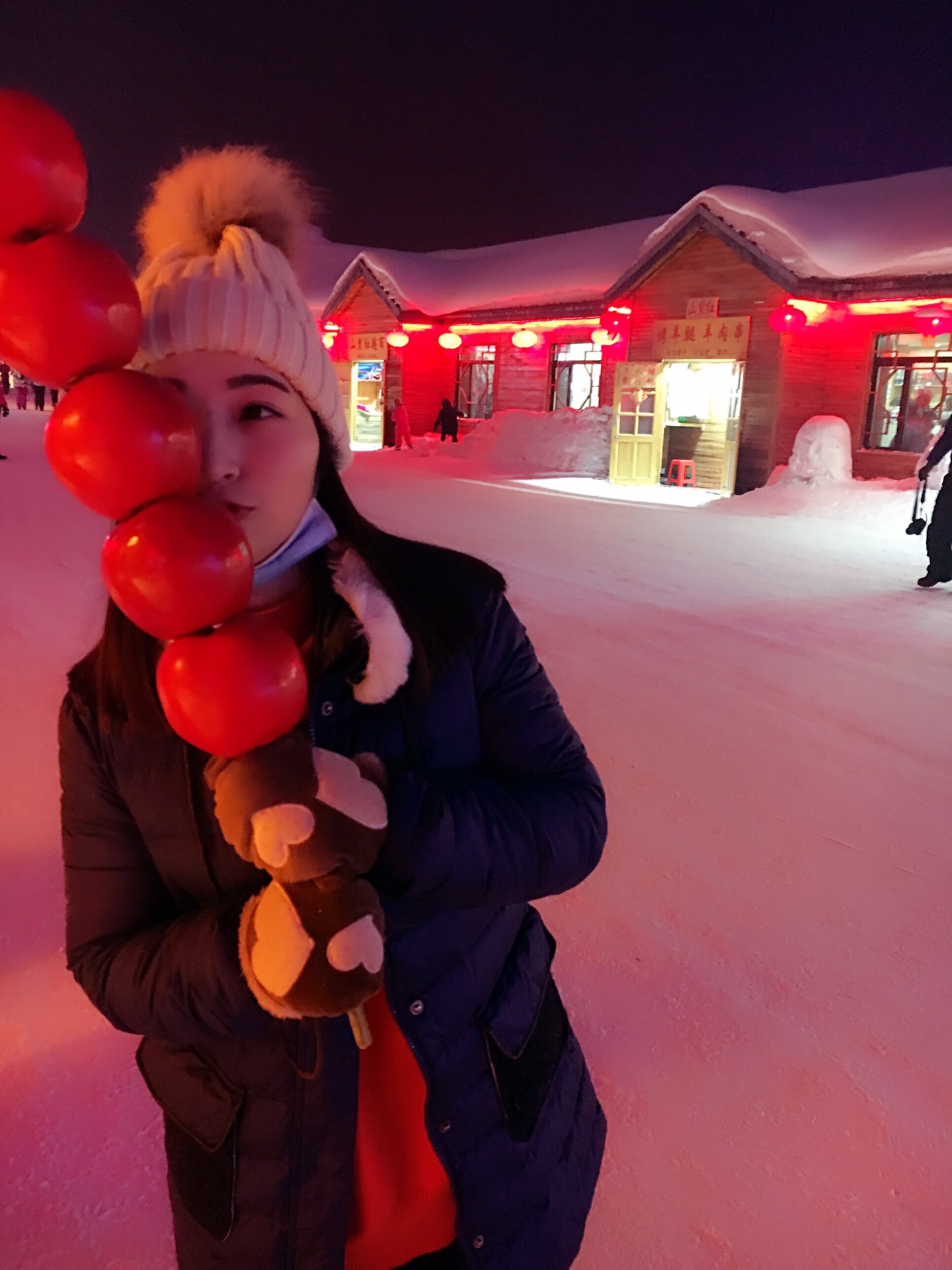 吃完我们就逛逛呗,消化一下,哈哈哈哈~回来的路上又买了水果啊冰糖葫芦啊,这辈子第一次吃真正的冰糖葫芦,真的是冰住的,第一口冻掉我的大牙啊,然后回到公寓,吃了半个小时有的吧😂