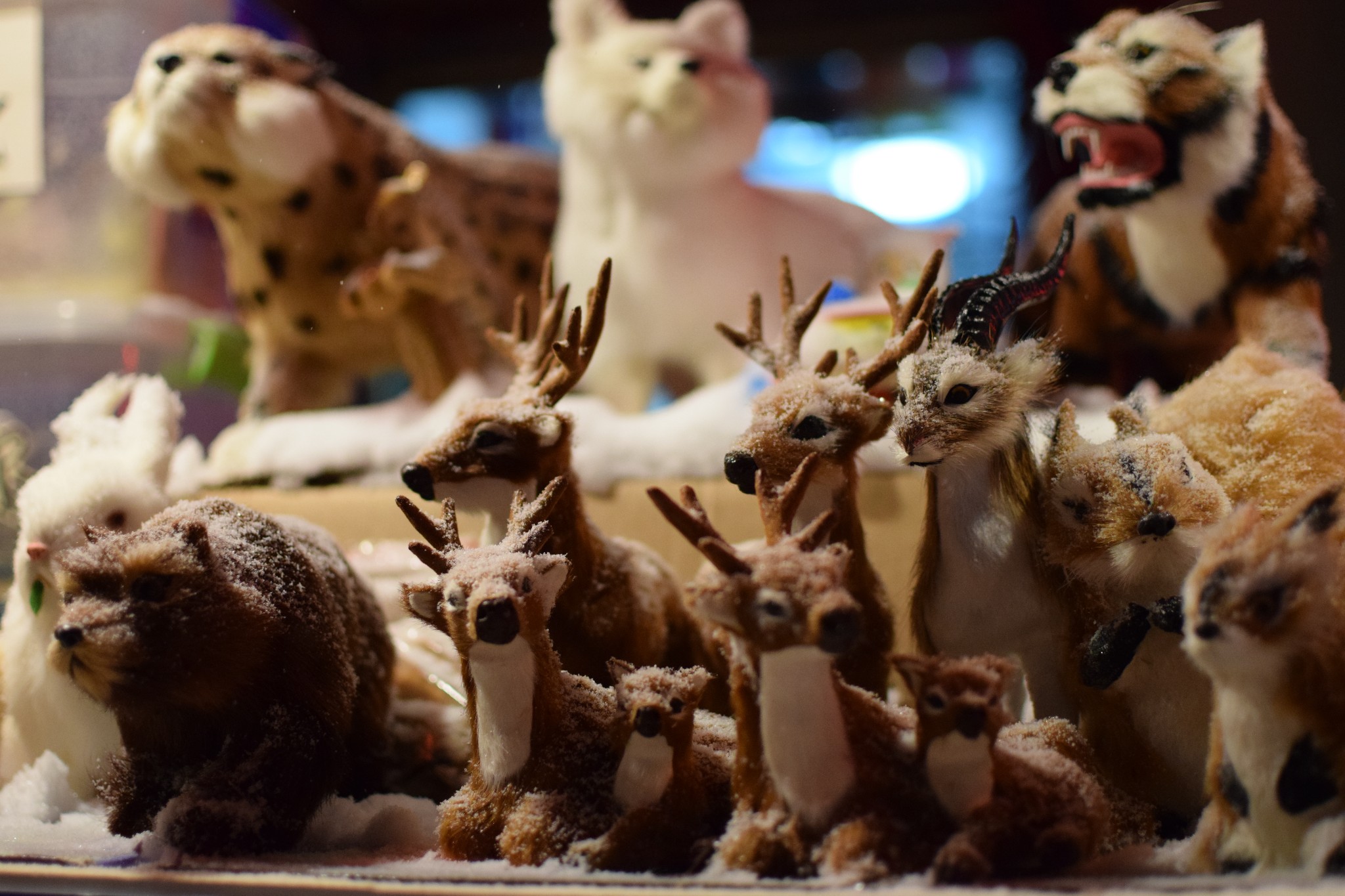 这边的小摊都直接用雪堆一个台子,东西放外面卖的,小动物玩偶萌萌的~