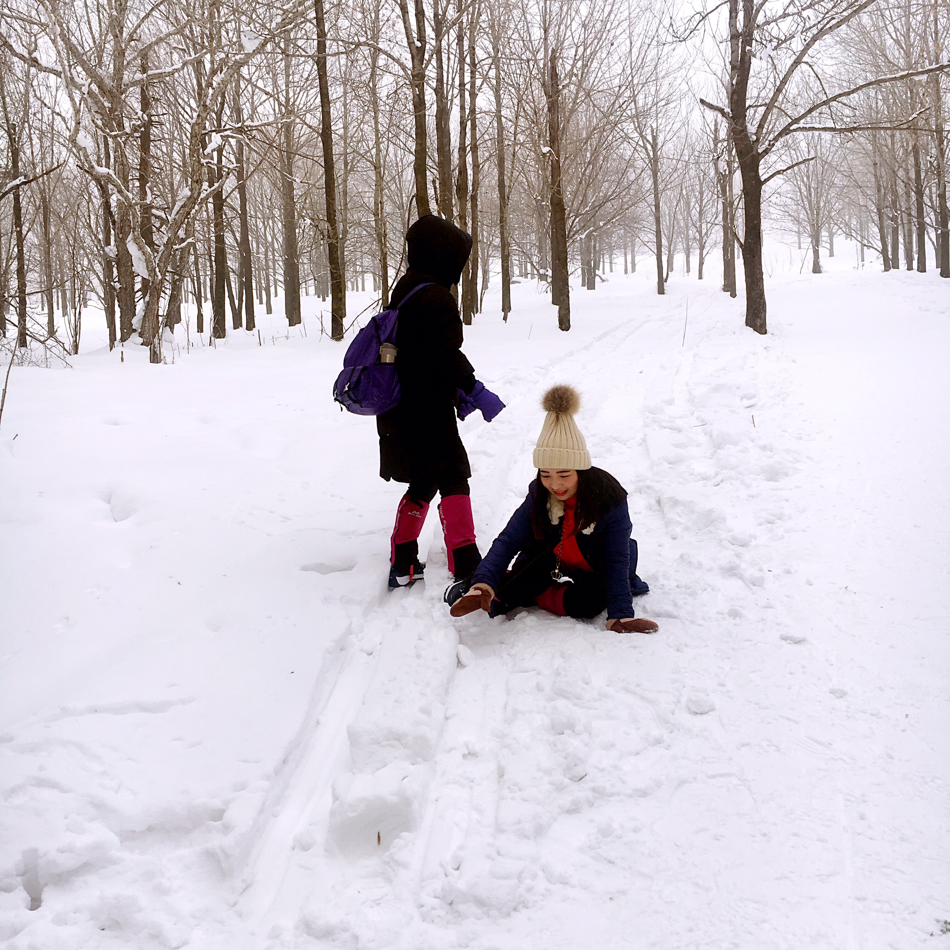 我家妹妹那个没用的,她拖着雪圈上坡是三步一滑的那种,所以就变成了我拖着两个,旁边那个就是六六