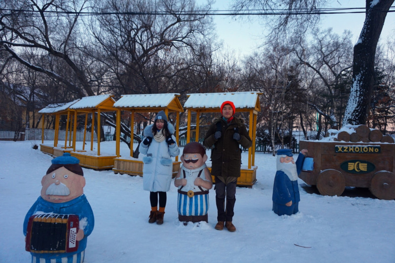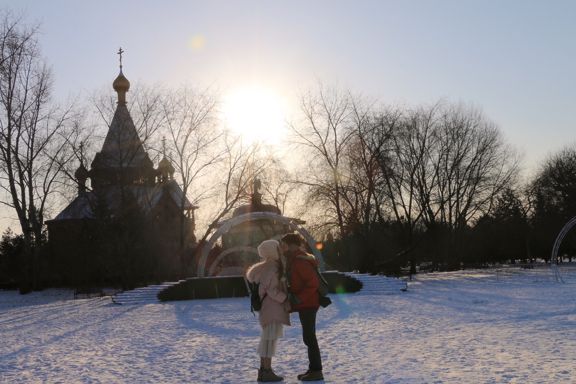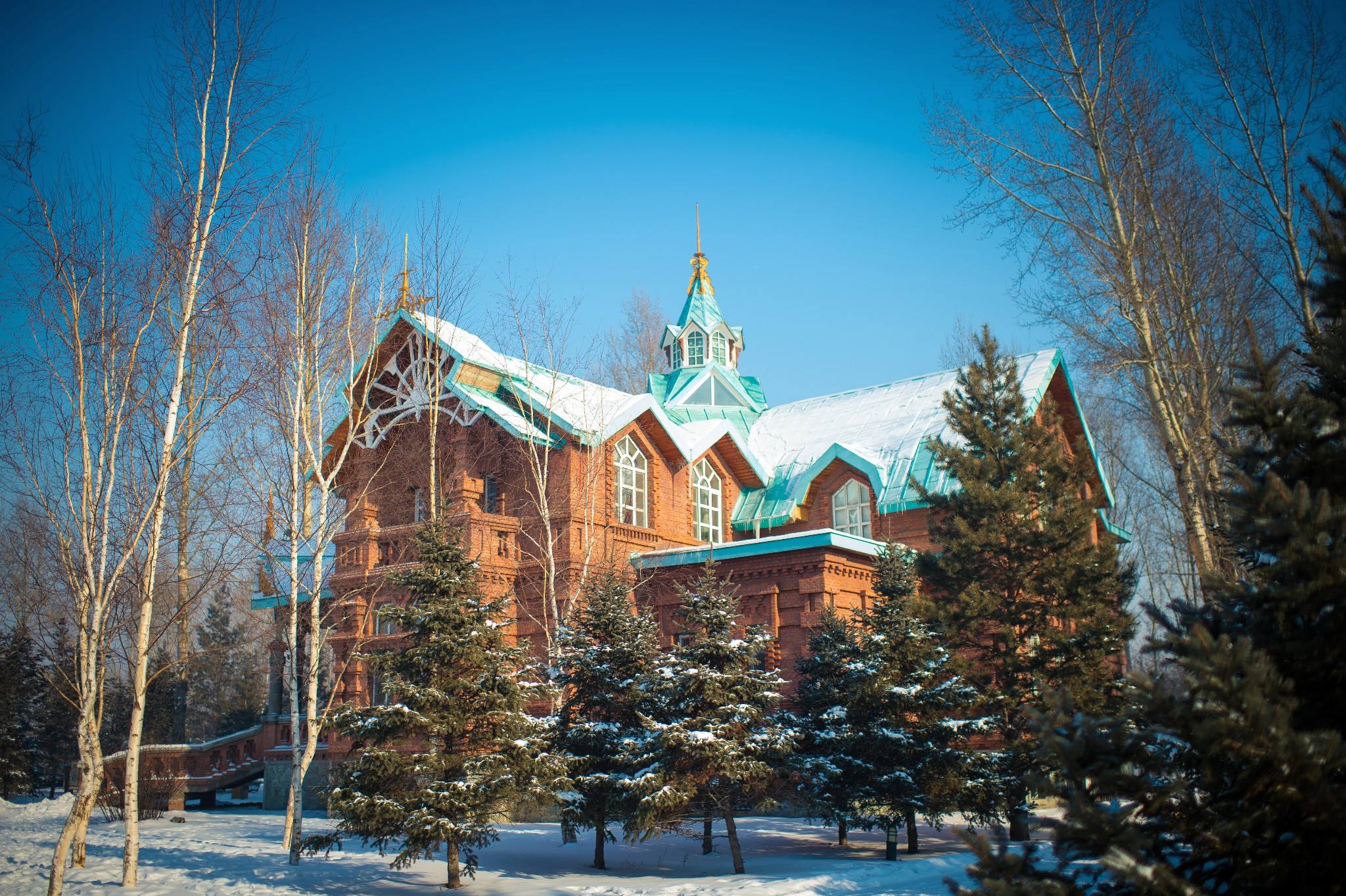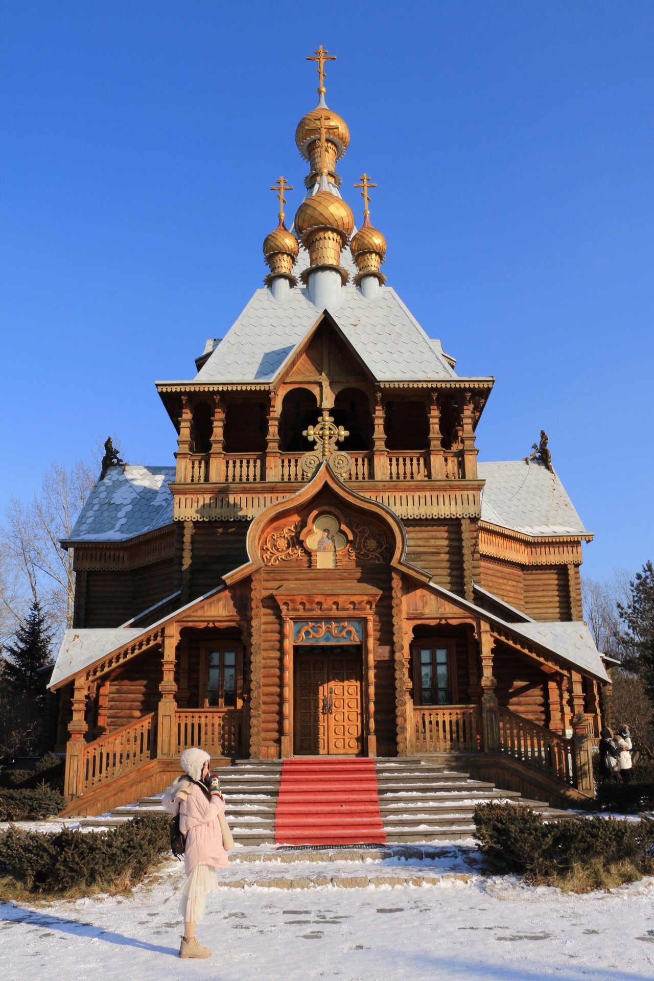 一脸蒙蔽的坐公交回中央大街,果戈里大街转角处看到一个教堂,挺好看的。中央大街上到处都是大小广告的, 漠河 、 雪乡 雪谷、冰雪大世界仨大主题,我们去的时候冰雪大世界预开园,网上票价都是280左右,这边小广告的可以给到260包来回,给玩仨小时。可以的可以的。最好找那种人少的旅行社,人多容易有人迟到,路上接人耽误时间;冰雪大世界真的超级超级大,里面有很多冰滑梯,直接坐上面滑不下来,需要小滑板,这时候穿越的小滑板就派上用场了。里头还有俩比较刺激的免费项目,在超高的地方分别用雪圈和滑板滑下来,有提供免费的雪圈和滑板,但是要排队,人多的时候得排上个把小时。