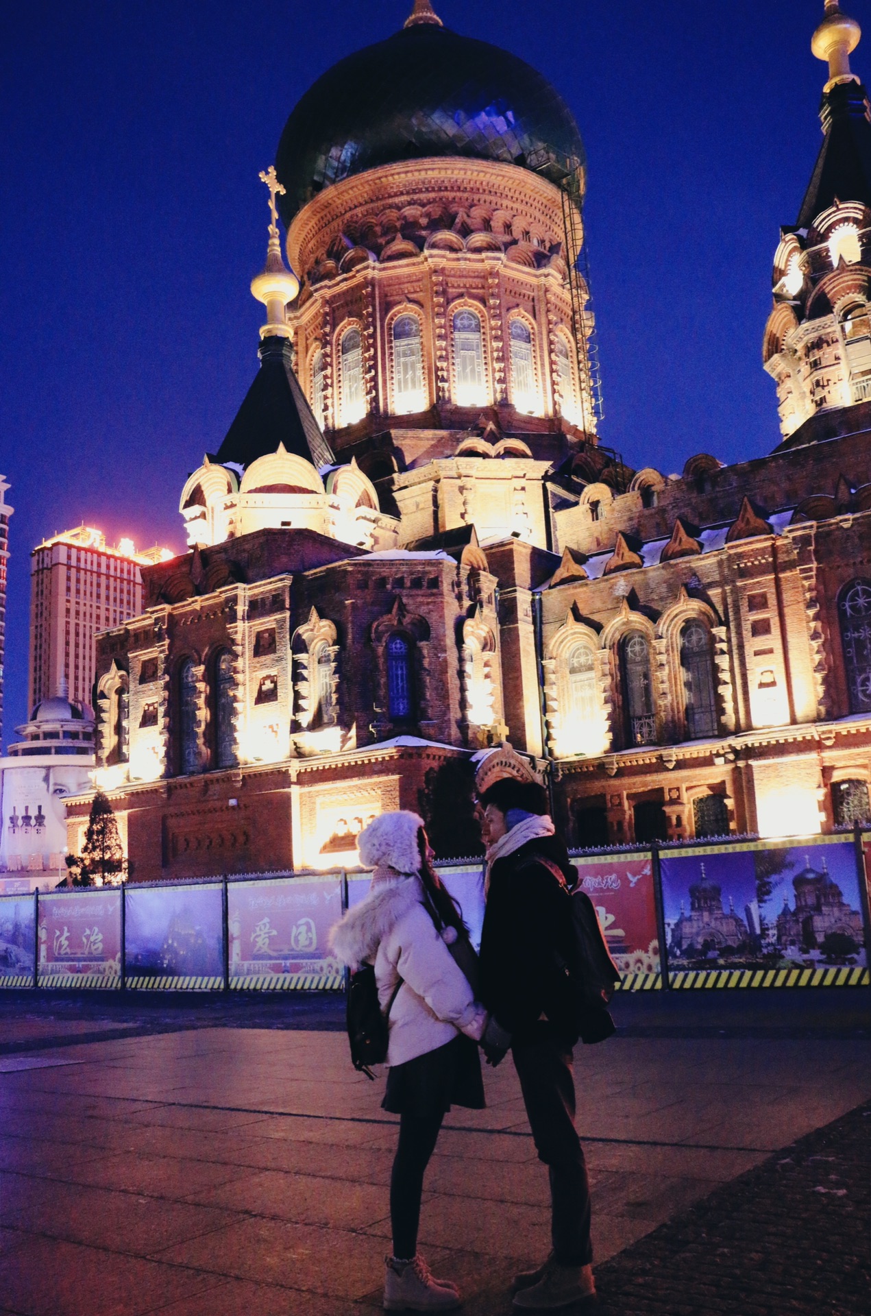 记得小时候每当看到电视播放冬季雪景的时候,总盼望着长大后有一天能够亲身触摸到真正的冰雪。对于一个从小到大都在 中国 南方长大的人来说,都无比憧憬能够看到白雪皑皑美丽雪景的画面。最让我意想不到的是,这一天终于到来了,而且还是在 中国 的冰城 实现了。北国风光,千里冰封,万里雪飘。南方人一直对 东北 的冬季抱着好奇的心情,漫天雪花飞扬,踩在冰封的松花江上,堆着雪人、扔着雪球,这种有趣的画面都只存在于北方的国度,似乎与四季如春的南国毫无关联。正因此,每逢立冬后,下起了鹅毛大雪,都让远在南方的人们感到兴奋,因为一年一度的冬季旅游正式到来了!温馨提示1、冬季的 极为寒冷,特别对于第一次去 东北 的朋友,一定要带好防寒衣物,如暖宝宝、保暖内衣裤、帽子、口罩和手套等物品。尤其是帽子和手套一定要准备好,在 零下二三十多度的室外,赤裸的部位是完全扛不住的!!!2、如果你没有购买雪地靴的话,最好穿厚一点的袜子,如羊毛袜,实在没有带的话,一定要多穿一双袜子,因为在室外待久了脚趾也是会被冻得生疼。鞋子可别穿运动鞋哦!最起码也得是高帮的鞋子。3、摄影器材方面,如果你的相机型号比较新款或是专业类型的单反相机的话,不必太过担心电量损耗过快,尤其是新型号相机一般影响不会太大。不过最好多备1~2块电池最为保障。4、 东北 的冬季白昼时长较短,基本下午4点多就开始日落,所以白天玩耍的时间要抓紧,夜晚会更佳寒冷!圣索菲亚大教堂对于第一次来 旅游的我来说,第一个最想去的地方应该就是闻名中外,有一百多年历史的「圣索菲亚大教堂」。圣索菲亚大教堂无疑是 城中的一大亮点,教堂内的壁画、吊灯、钟楼及穹顶,无一不显示丰富多彩的人文景观和匠心独具的艺术特色,是具有非常高历史文化价值的建筑。
