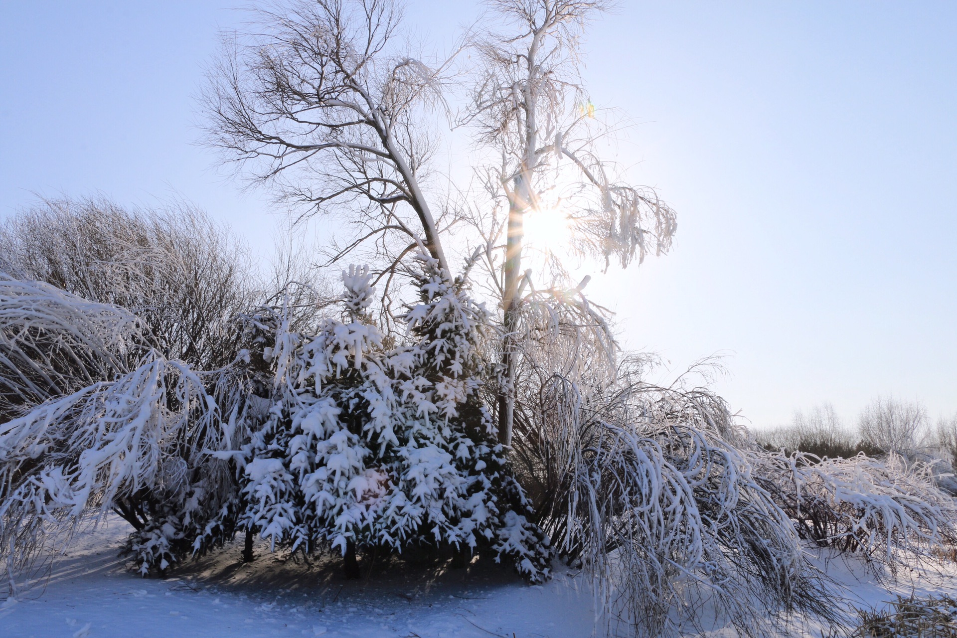 雾凇岛这边的雾凇一般,可是刚刚升起的日出可漂亮了~~雾凇岛同行的伙伴飞速走去江边拍雾凇,何先生也忍不出拍拍拍,不过这雾凇看着跟网上看的雾凇不太一样啊,是因为两颗星的原因吗?
