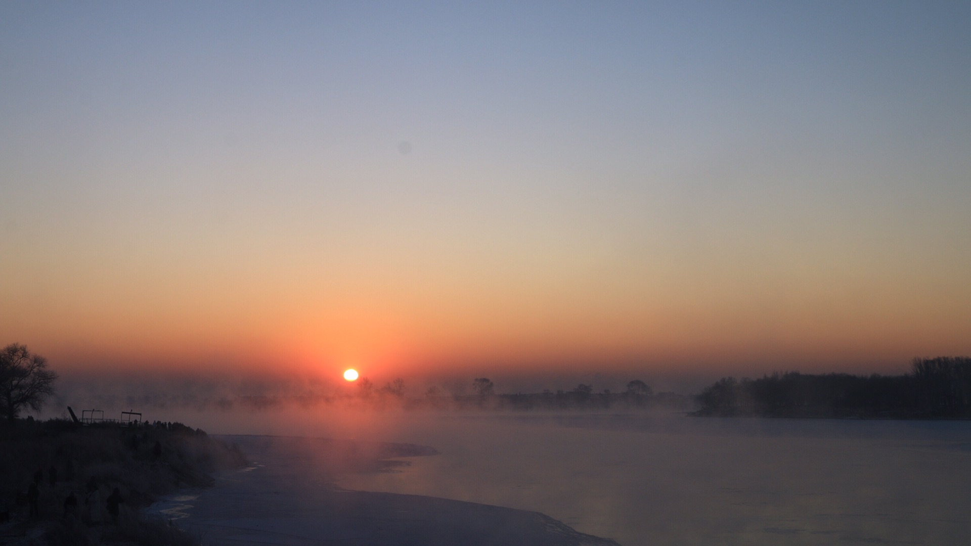 雾凇岛不知不觉已是此趟旅程的最后一天,按昨晚约定的时间,我们起来吃早餐后老板安排了车先载我们去江边看日出~~