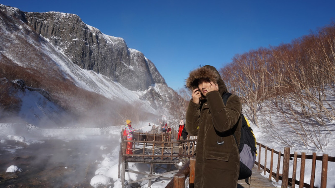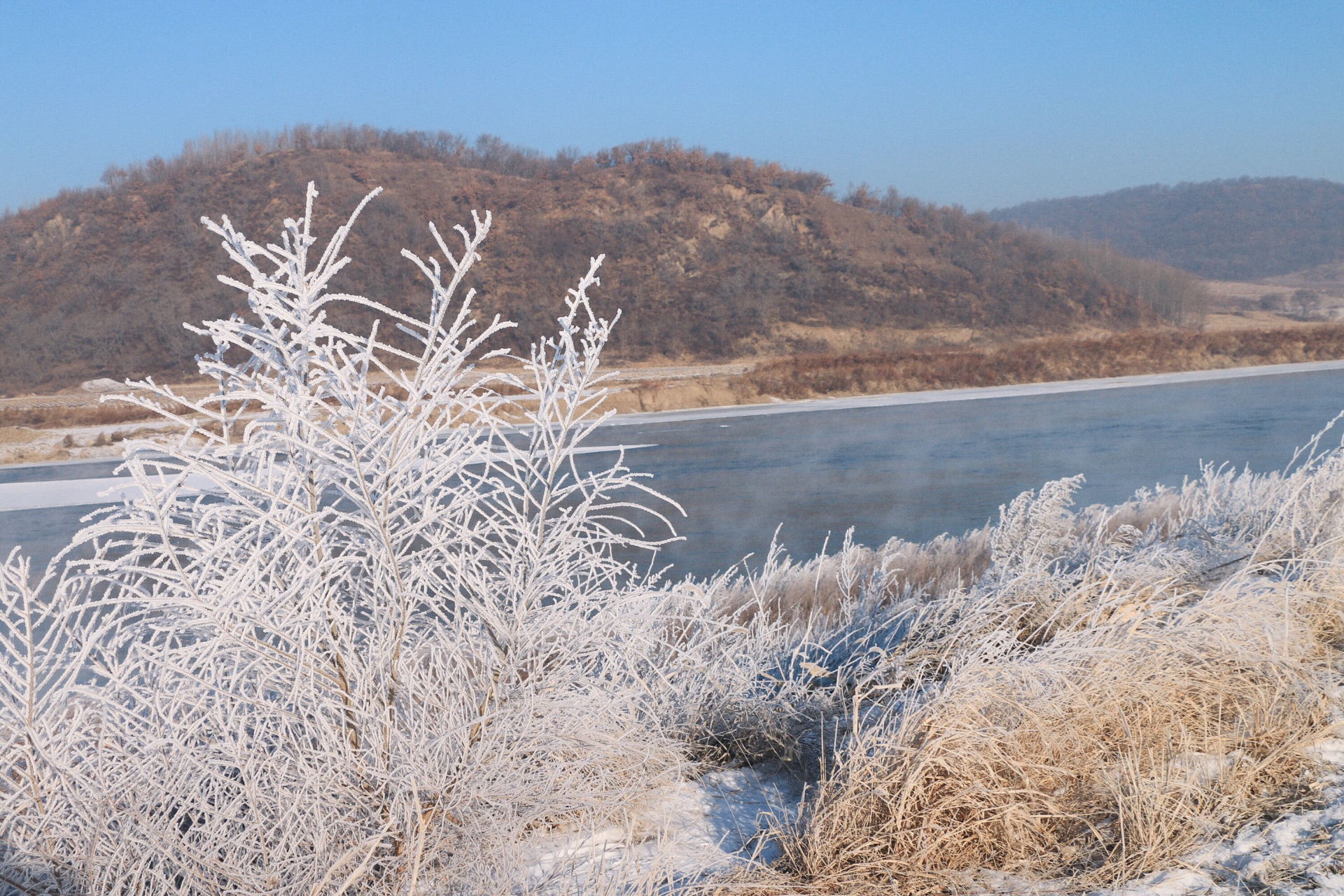 本日支出:南京 飞 长春 龙嘉机场360*2龙嘉到 长春 城际铁路8.5*2长春 到 吉林 动车32.5*2吉林 到乌拉街长途汽车11.5*2零食26雾凇岛 入岛费50*2雾凇岛 谢家客栈住宿124客栈吃晚饭25*2D2 雾凇奇观~进入雪谷这边老板每天天亮都会开车去江边看看雾凇情况,回宾馆走廊叫一声“今天有雾凇,大伙儿早点起床吃早饭咧”~特别敬业!吃完早饭,老板开车送我们去江边看雾凇。今天的雾凇不够大,作为 东北 第一站先熟悉熟悉温度。