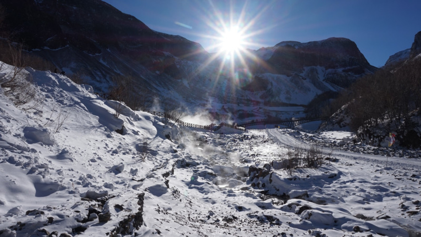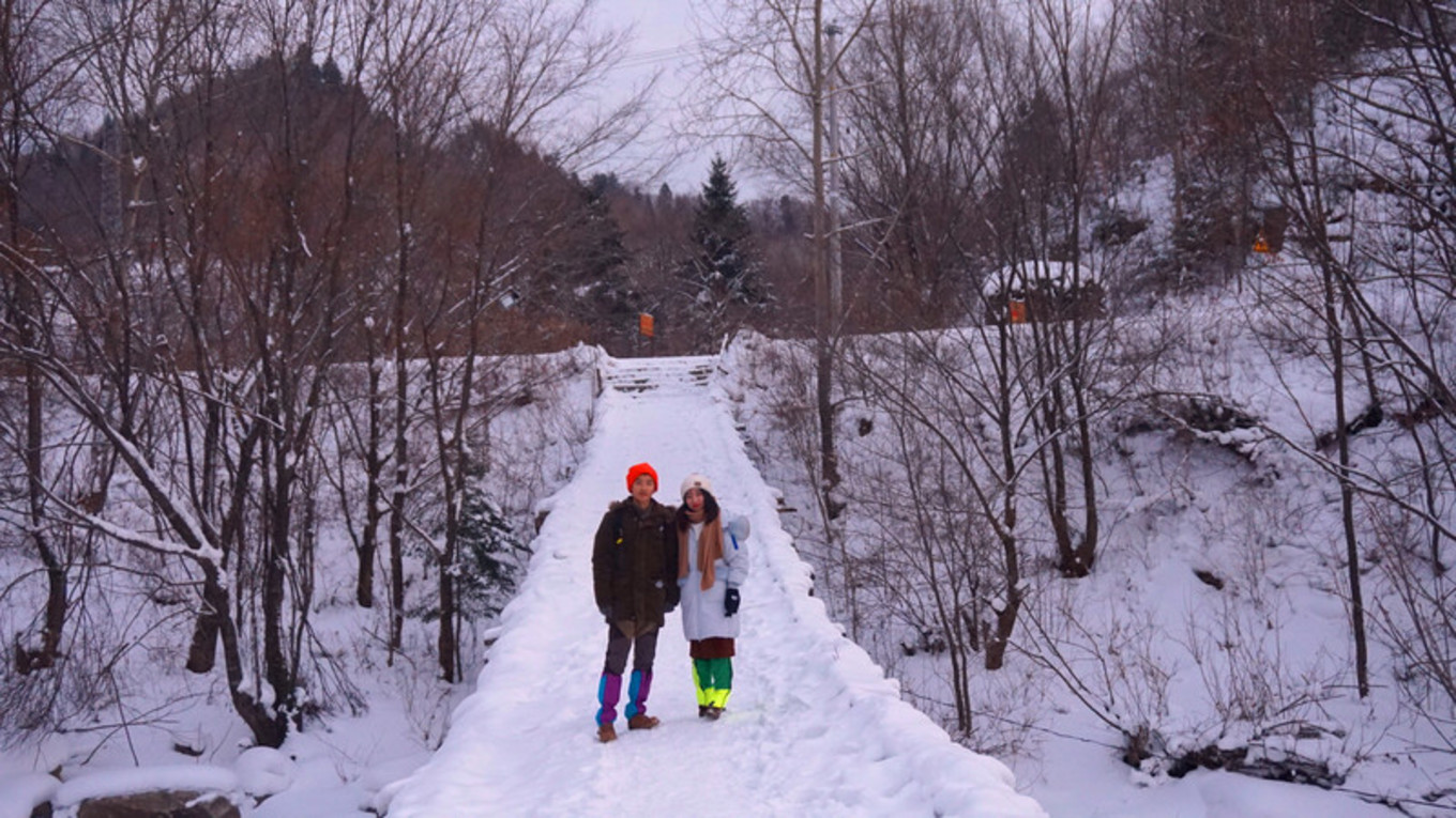 到达穿越的起点 中国 雪谷,雪谷太美了!到达后入住雪谷农家,感受 东北 的大炕,穿上 东北 大花袄来几张照片吧。