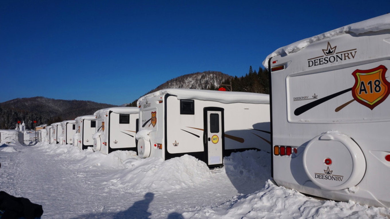 入住房车。因为 雪乡 的大炕被定满,导游给我们升级了房车。 雪乡 有个房车基地,这种房车是挂车,空间非常大。对于爱旅行的人来说,能有房车真的是终极梦想。里面暖气很足,2张床位,2-3人完全睡得开。