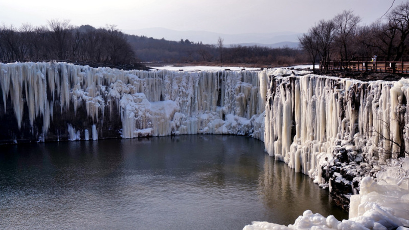 此时的吊水楼瀑布,因冰冻而形成了落差达15米、幅宽达300余米的大冰瀑。冰瀑晶莹剔透,冰棱交错。“千树万树梨花开”的美景是大自然留给我们最纯净的礼物。镜泊湖风景区镜泊湖, 牡丹江 最美丽的湖泊,美称为北方的西湖,是当地知名的避暑胜地。这片宁静的湖泊据说是天上的红罗仙女掉下来的一面宝镜,变化成了如今的镜泊湖,宛如一粒纯净的珍珠,温润悠然。