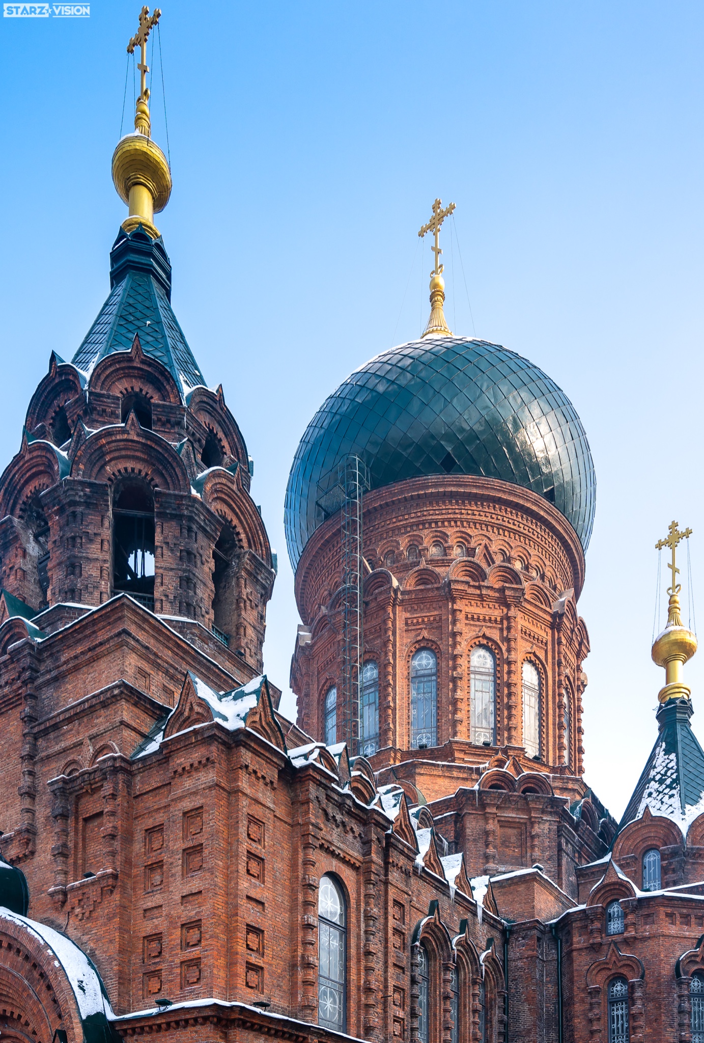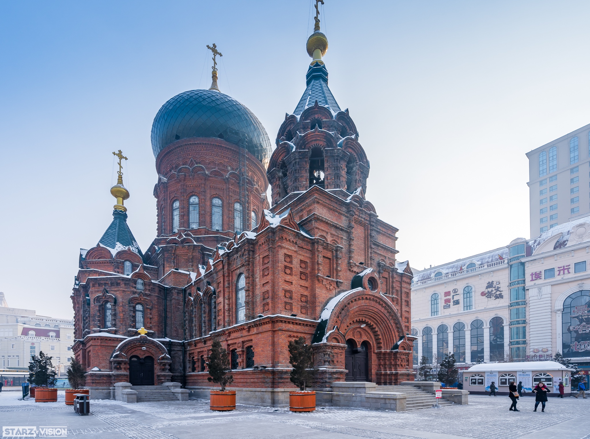 记得以前只在旅游书籍中看过,就一直印入我的脑海。今天终于一睹其真容,而且还是在美丽的白色冬季,其景色充满了异国风情,让我深深迷恋。作为国内保存最完整的拜占庭式建筑,圣索菲亚大教堂在建筑设计上充满了特色之外,其名字也十分耐人寻味,据说“索菲亚”意为“神灵的智慧”,以此为教堂命名,是供奉智慧之神的意思。