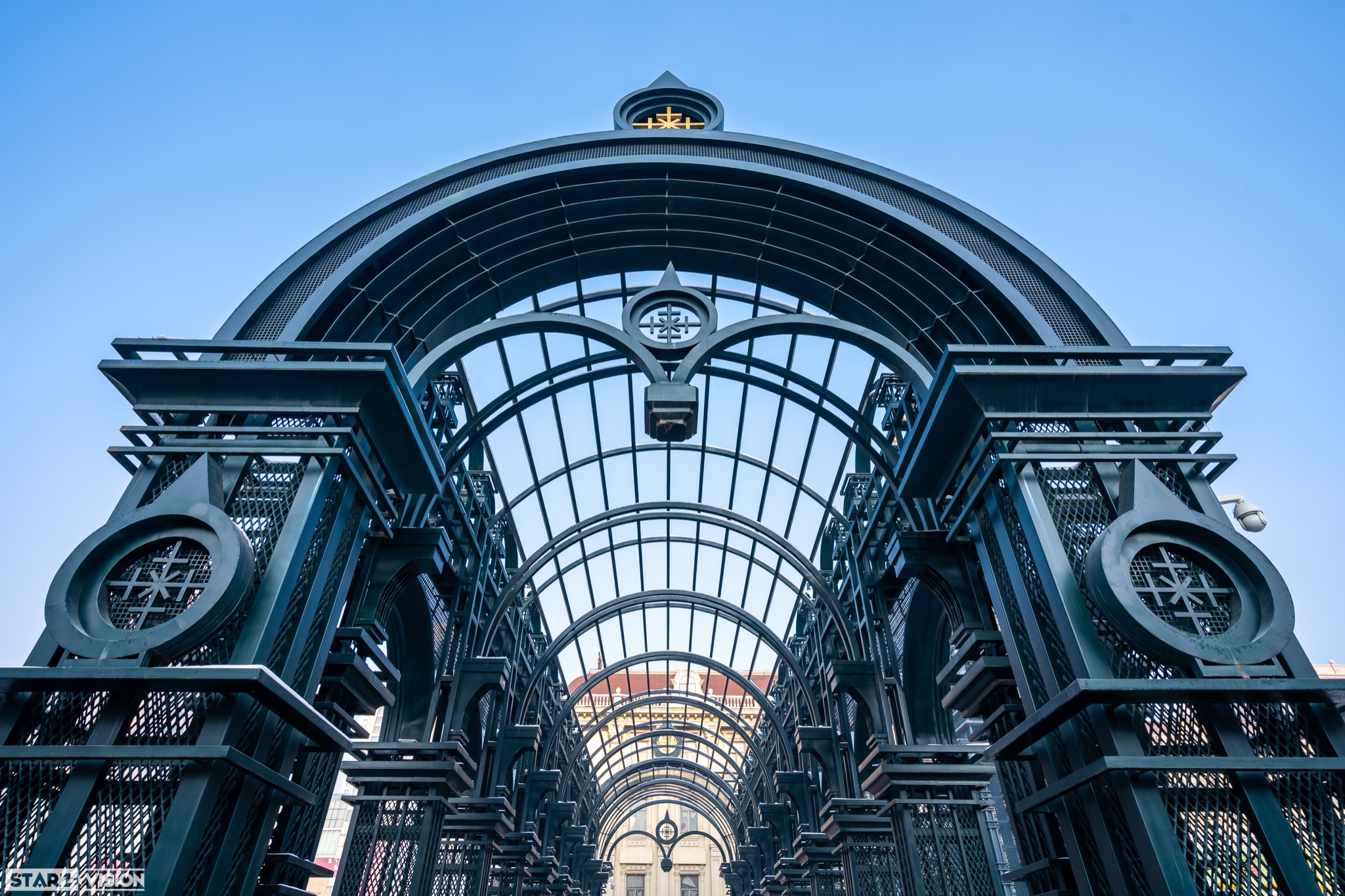 位于广场的一侧还有一个非常独特的铁艺建筑。远看像极了 俄罗斯 的火车站,其镂空的设计颇有特色,与圣索菲亚大教堂相邻,也显得独具一格。同时也成为来观看圣索菲亚大教堂之外的另一个打卡点!