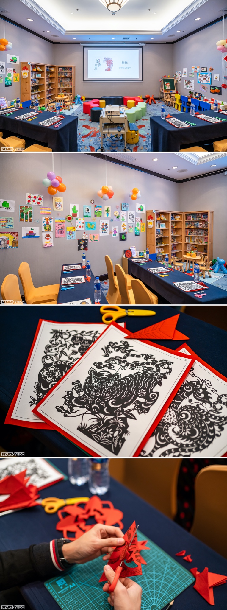 入住 香格里拉 大酒店的另一个理由就是,享受度假与服务之余,酒店的「童童之家」还为游客和小朋友们提供有趣的地方特色体验,如包饺子、剪纸、绘画等课程免费学习。尤其是剪纸,估计有不少人可能从未接触过,老师们会手把手教导你们,将剪好的纸还可以带回家裱起来收藏,十分有纪念价值!
