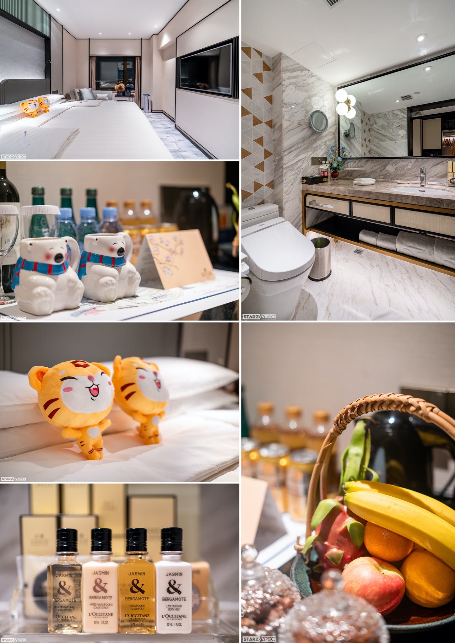 而我们选择的是雅致江景大床房,房间整体设计为现代流行的简约风格,空间宽敞舒适,配套十分齐全,迷你吧里的饮料也是免费提供给住客饮用,还附送一篮水果,非常贴心。而浴室内的洗浴用品是采用了知名品牌欧舒丹,体验 香格里拉 酒店高品质和档次,值得点赞!当然,江景房最大的好处就是能够透过窗外看见松花江的雪景,白雪皑皑,美不胜收!