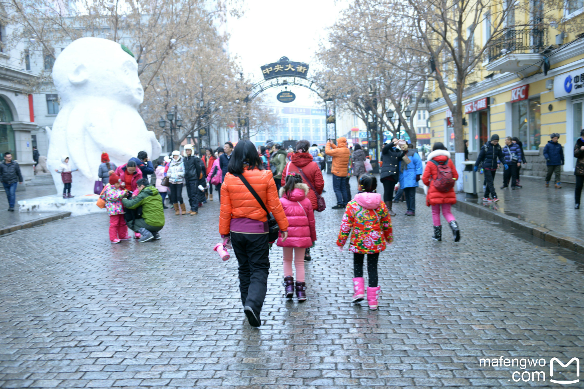 手机拍张是可以的 但是要注意 室外温度较低 手机相机的电量极易耗尽,准备充电宝 及时充电市区内好玩的地方也很多 简单介绍一下1中央大街中央大街,亚洲最长步行街,这个很多人都知道。但是我的建议是找个厉害的导游讲讲,听着历史走和自己走的体会完全不一样,我之前走过很多遍并没有什么太特殊的感觉,直到听一个导游朋友讲解忽然发现平日司空见惯的道路变得格外具有意义了起来。顺着中央大街直走就可以到松花江,江边有斯大林公园,防洪纪念塔,江上有各种滑冰等游乐项目,可以讲价。江上有索道可以直接到江北天鹅城堡,往返80元一位,也可以选择单程,网购更便宜,但是缆车上特别冷。在中央大街上逛累了冷了可以选一家咖啡店进去歇会儿暖暖。