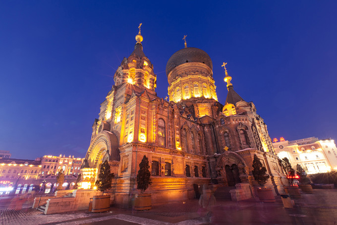 长白山 滑雪攻略这附近还有圣索菲亚大教堂,晚上看起来也是非常梦幻的。