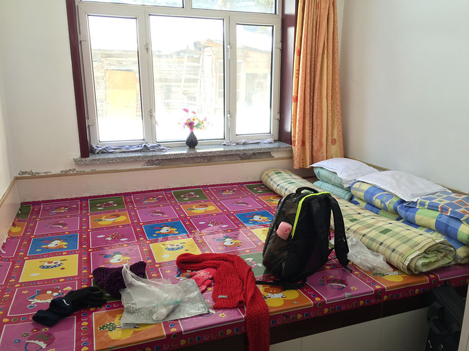 雪乡的家庭旅馆,上图是三人简。靠窗户的位置晚上还是有点冷,感觉密封不到位。衣着:我是一个蛮不怕冷的人,在武汉或者上海冬天从来不穿秋裤的,去了秋裤、毛裤、绒毛运动裤(因为绒毛运动裤方便行动,穿牛仔估计无法走路了),女生最好带个帽子以及口罩围巾。基本上零下30-40度之间,羽绒衣加冲锋衣裤是必备的,过去以后再花几十块钱买双靴子和帽子就OK了。喜欢摄影的朋友记得带上一个大的密封塑料袋子,室内外温差大镜头会起雾,进屋前把相机塞进密封袋子以后就没问题了。