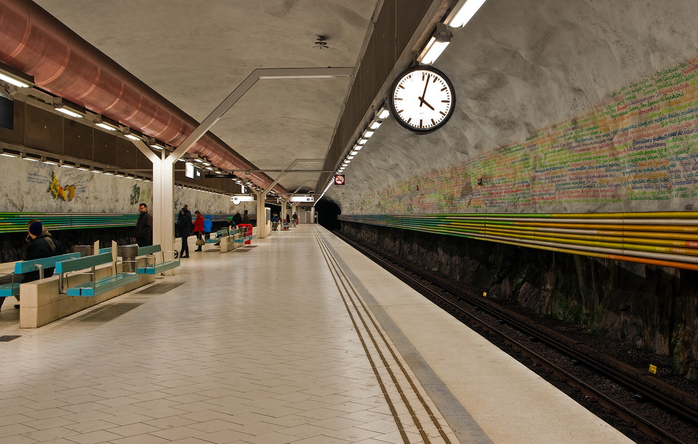 推荐三个我最喜欢的吧Tensta地铁站(地铁蓝线)这里仿佛踏入一个布满蜡笔色调与稚朴画风画作的原始岩洞,海豹、大嘴鸟、驯鹿、大象和骏马安然的在墙上望着来往的行人;沿着一片翠绿茂密的杉树林,月台的终点是一朵硕大无比的粉色玫瑰——每一个角落都溢满着设计师Helga Henschen属于女性作家和插...显示全部