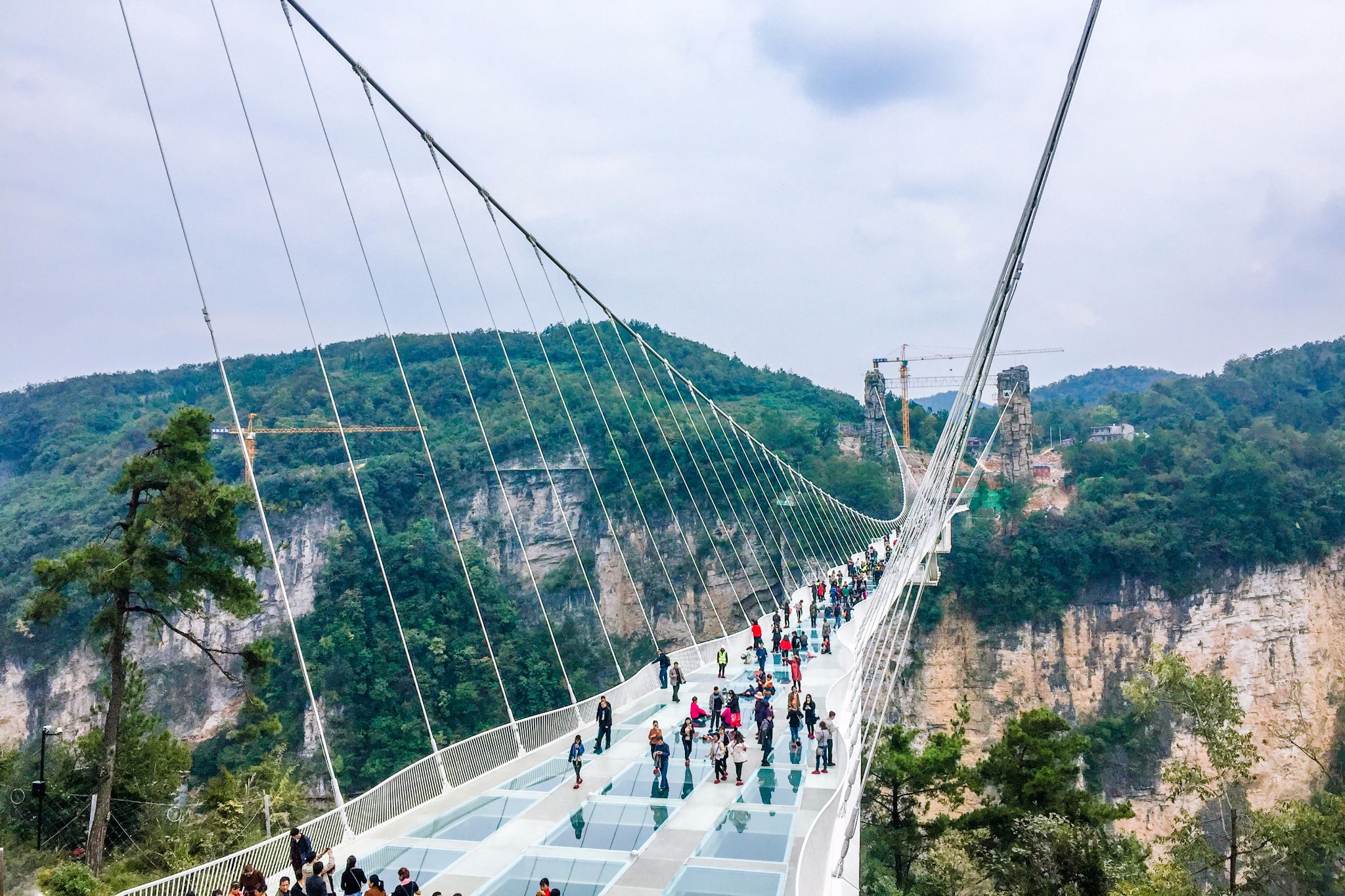 远远望去,玻璃桥上不少人站在上面。