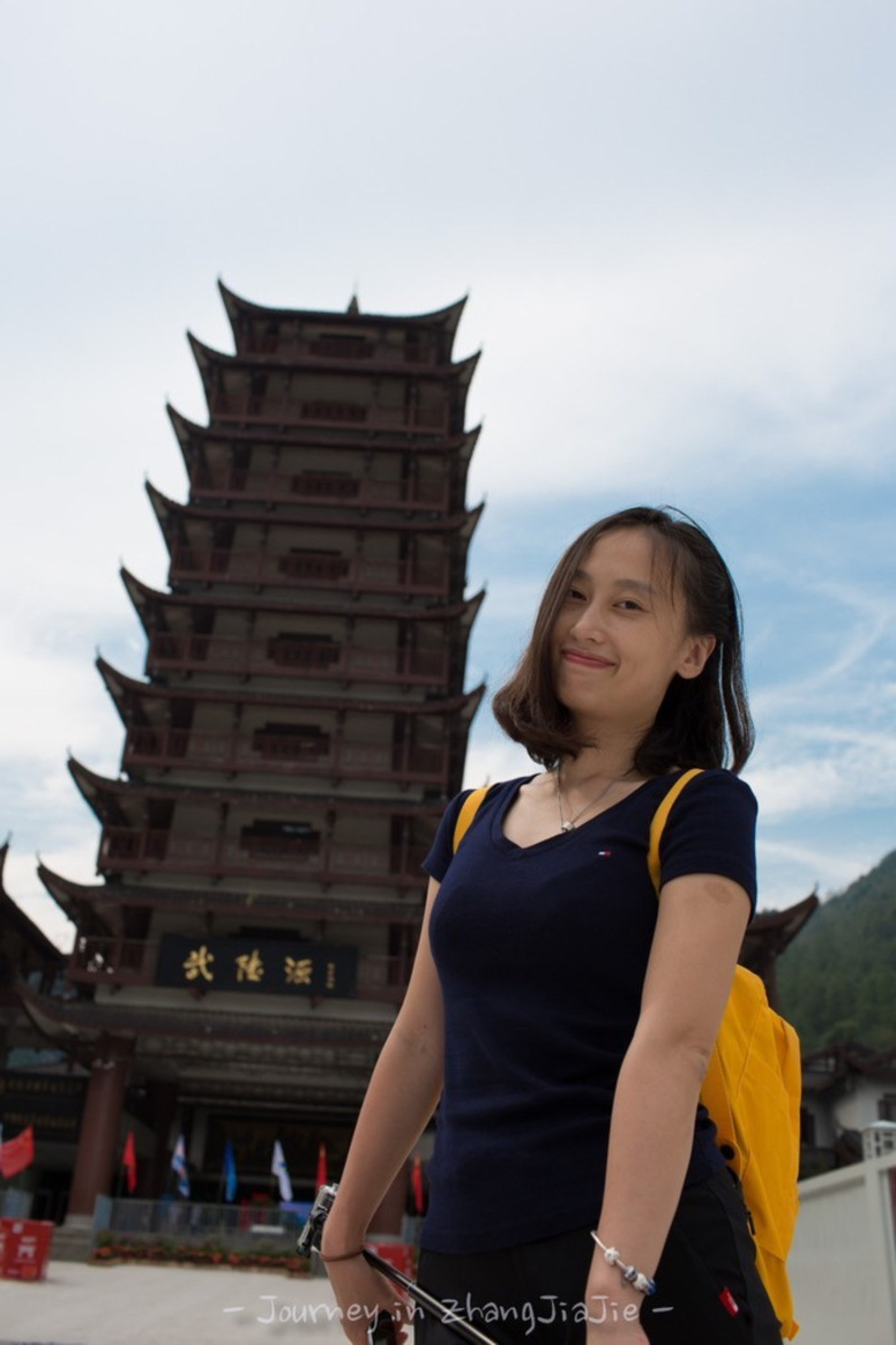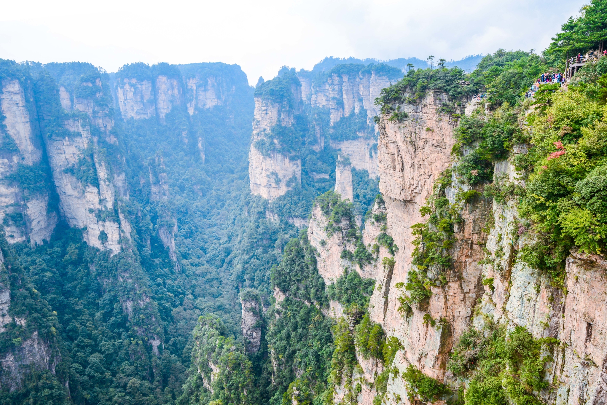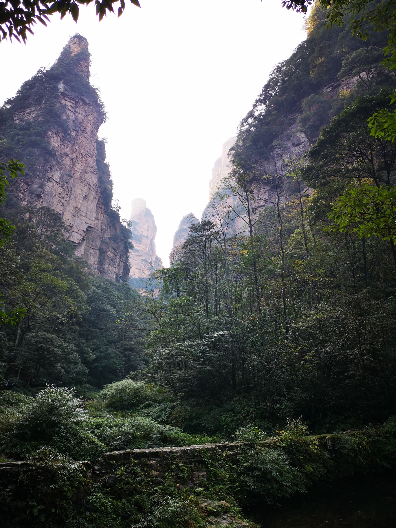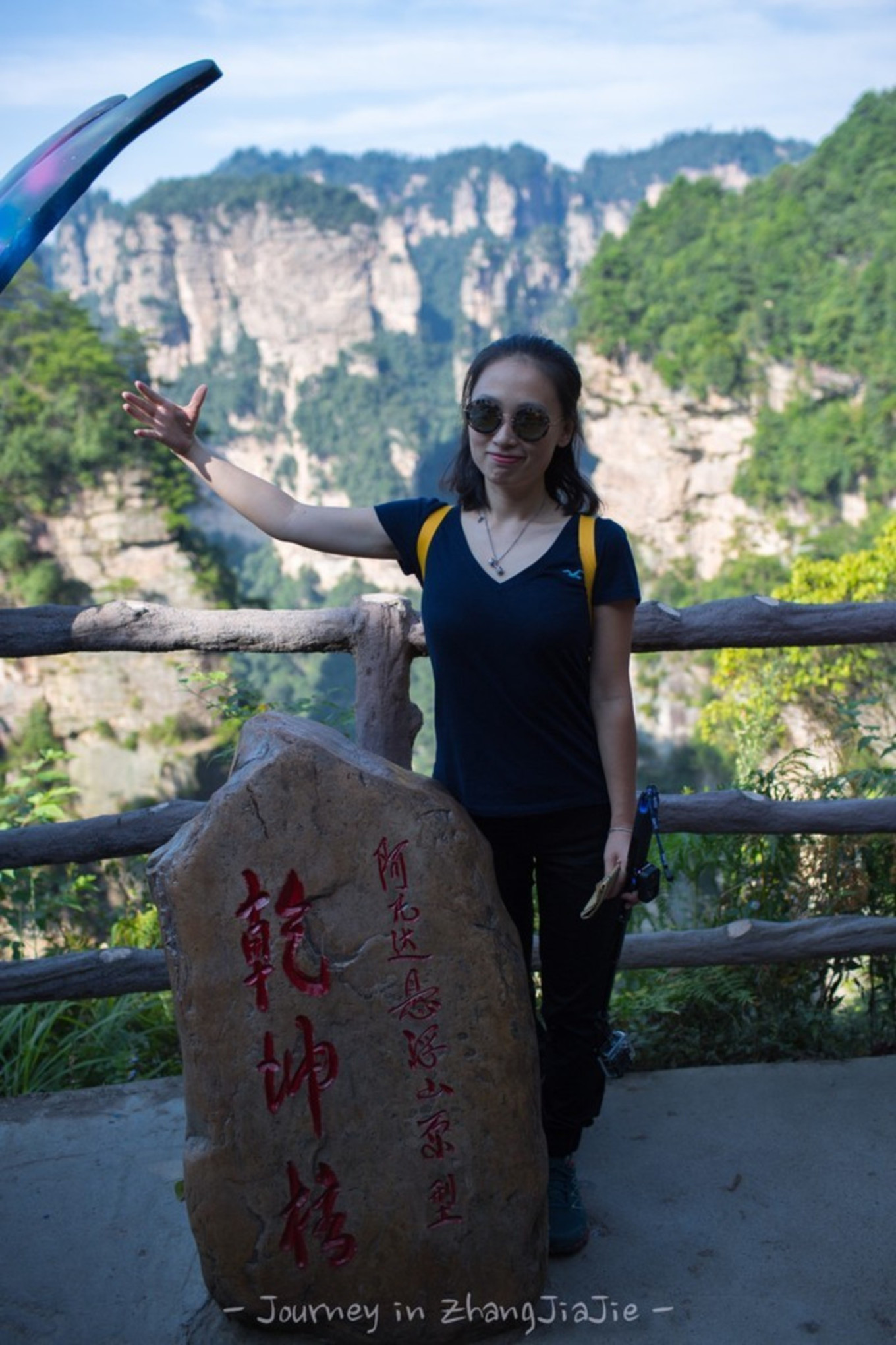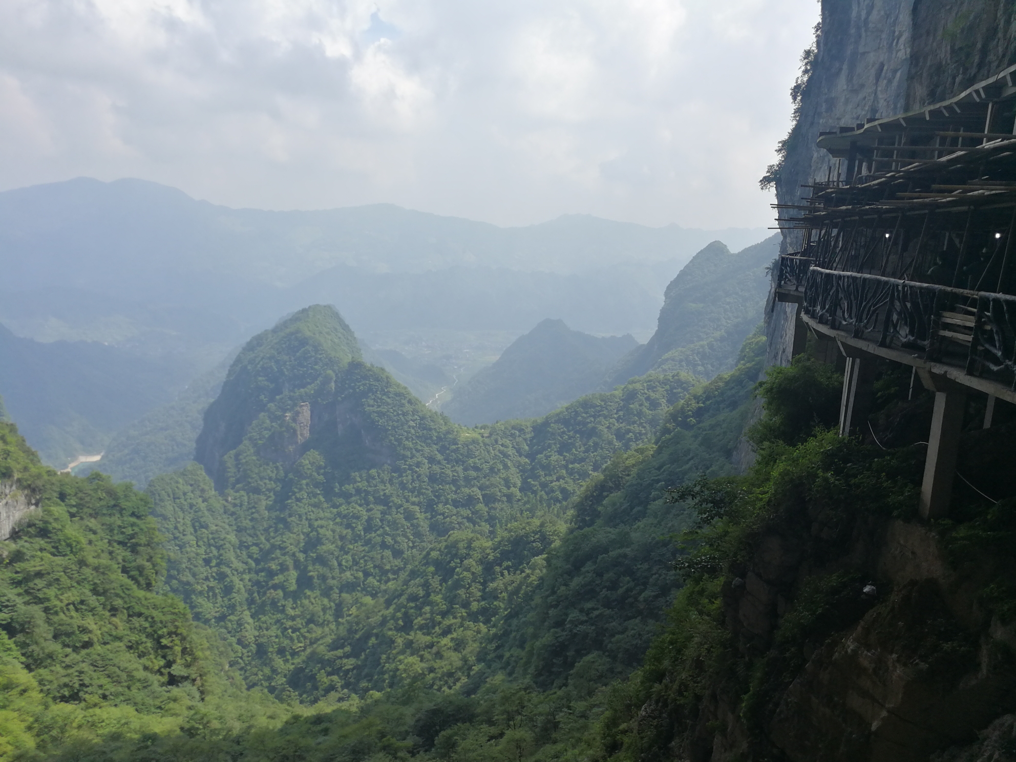 这里就是近处看到的天下第一桥,虽然也很壮观,但却是普通人视角,这里的游客很多,是比较有名的景点之一百龙电梯本来准备从乱窜坡徒步下山的,但是体力实在有限,而且徒步下山的路线几乎都没什么景色,实在不值得耗费体力。我们还是选择百龙天梯下山,依然是先到山顶的观景台,晴天的景色和阴天又有不同。