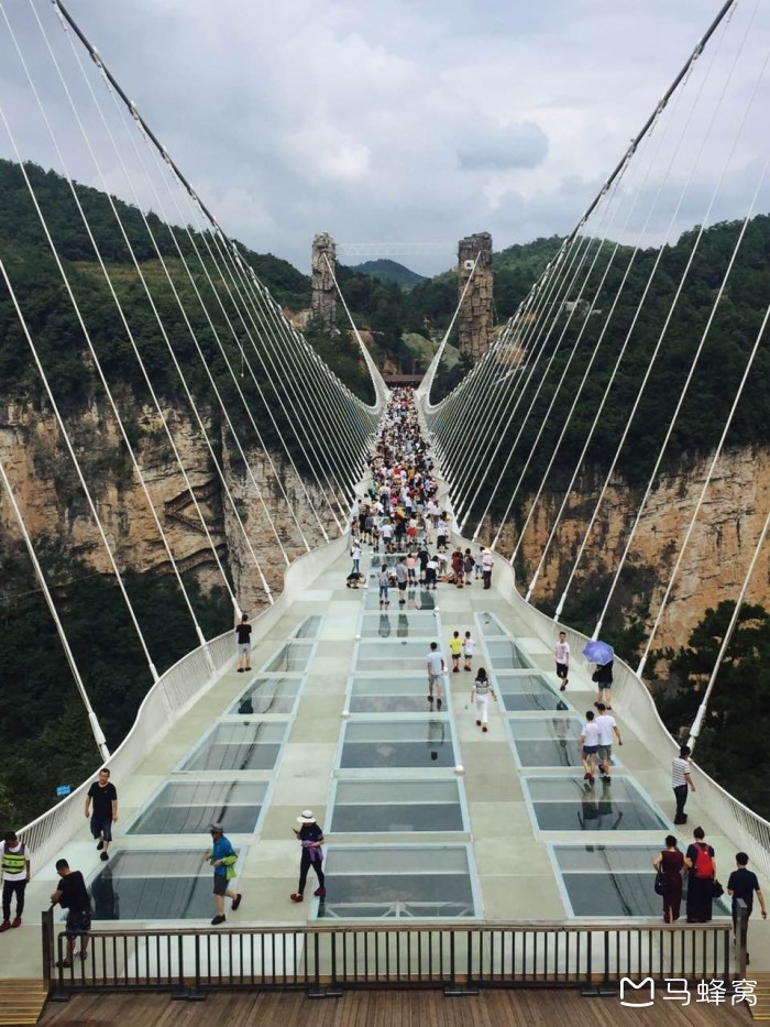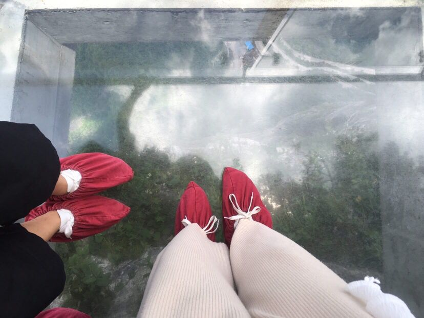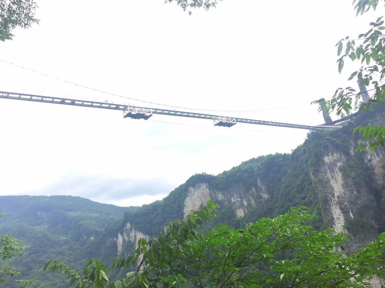 呼吸着新鲜空气,望着远处的山峰,我们踏上了著名的玻璃桥上。(不过这里要求,上玻璃桥不能携带相机,所以我就用手机拍的)