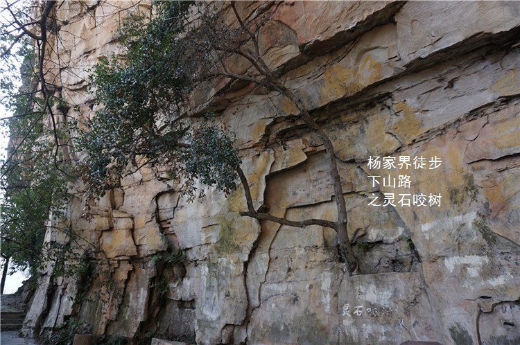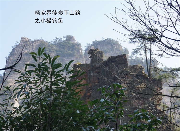 空中走廊返回到空中走廊路口,开端下山。沿途有 灵石 咬树、龙虎风云、小猫钓鱼、相见恨晚几个有牌子的景点,都还值得一看。