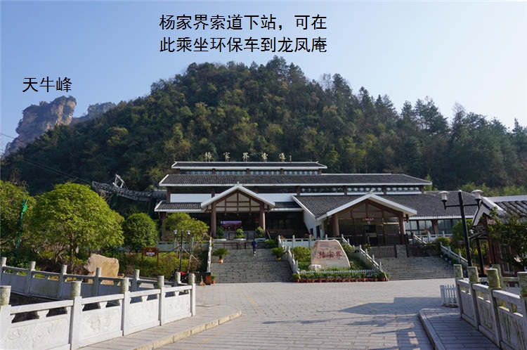 景色名胜区-杨家界景色区在索道下站前面停车场坐环保车到龙凤庵(车程约15分钟),再步行15分钟木栈道下山到龙凤庵下站,乘坐环保车(途经 黄石 寨索道下站)约5分钟即抵达大氧吧广场。