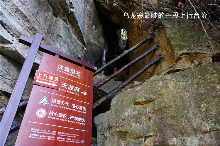 乌龙寨下面的寨门旁边就是杨家界索道要是老人家或者想偷懒的可以坐着索道上山或下山的时候,顺便看看乌龙寨险要的悬崖栈道和杨家界独特的峰墙奇观就不用这么辛苦地爬上爬下了。