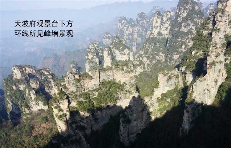 大观台分景区简介:杨家界杨家界景区位于 中心景区 西北 部,东南连 国度森林公园, 东北 邻天子山自然维护区,是 中心景区的四大组成局部之一,也是四大景区中最后一个开发的。杨家界一开端也是"养在深闺人未识",可刚一露头角,便"一鸣惊人天下知"。 湘潭 大学教授羊春秋先生旅游了杨家界后,盛赞道:"娟秀、绚丽、险特、雄奇……使人为之倾倒,为之拍案惊奇。" 山西 大学副教授周征松说:“杨家界是新发现的又一个神奇世界,这里山势绚丽,奇峰林立,俊俏无比。"杨家界景区主要是原始风光自然美。它与 (森林公园)、天子山、索溪峪比拟,除地质地貌与一局部山峰根本相同以外,又有其共同之处,特别是峰墙奇迹,由数十道相对平行而立的石墙组成,气势恢宏。地质学家陈 安泽 指出,杨家界峰墙是" 地貌"风光的重要组成局部,具有极高的科学价值、生态价值 和美 学价值。2014年1月16日, 市政府和张旅集团共同在 北京 举行新闻发布会,初次向全球推介杨家界峰墙奇迹。同年4月18日,杨家界客运索道试运转,游客可从杨家界门票站坐环保车到索道下站,乘坐缆车时就可观赏到峰墙景观——从森林公园门票站进的游客,可在大氧吧广场坐环保车到龙凤庵,徒步20分钟木栈道上去,再换乘环保车到杨家界索道下站,总用时约1小时。在山上的游客能够坐环保车到杨家界(刘家檐)环保车站,由此进入旅游杨家界景区。杨家界景区的旅游方式和图片已在上面的“特别引荐:杨家界下山道路”中有引见,此处不再反复。分景区简介:金鞭溪金鞭溪景区位于 国度森林公园中心位置,因流经金鞭岩而得名,西起大氧吧广场,东到水绕四门,全长5710米。金鞭溪沿线是 景色最美的地界,穿行在峰峦幽谷间,溪水明净,跌宕多姿,小鱼游弋其中。溪畔花草鲜美,鸟鸣莺啼,人沿清溪行,胜似画中游。被誉为"世界上最美丽的峡谷之一"。主要景点有醉罗汉、神鹰护鞭、金鞭岩、花果山、水帘洞、劈山救母、千里相会、楠木坪、水绕四门等。旅游金鞭溪可从森林公园门票站进入,全程徒步约2-2.5小时分到水绕四门,道路平整,易于行走,和十里画廊景区一样是 中心景区玩耍最轻松的景区。在金鞭溪景区中间的千里相会处有一条上山台阶路,此即为衔接袁家界景区后花园的乱窜坡游道,如不愿乘坐百龙天梯或天子山索道上山,可由此徒步上山(时间大约为一小时出头)。