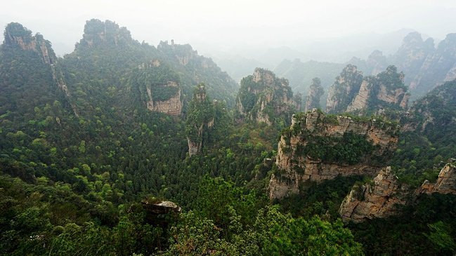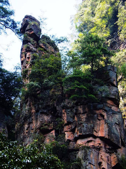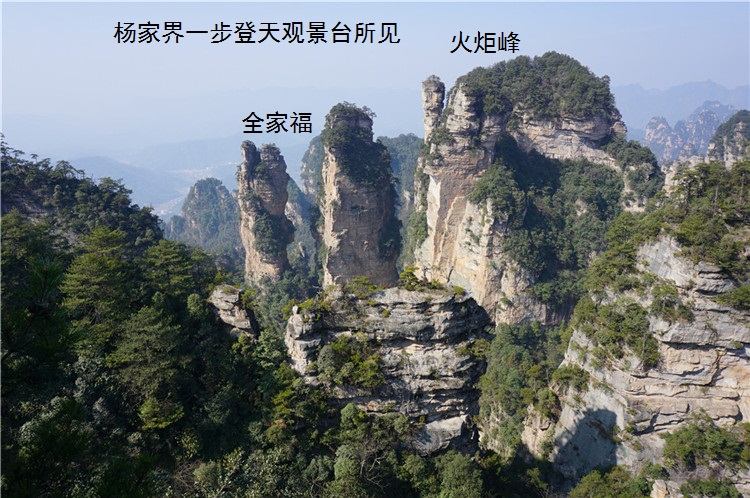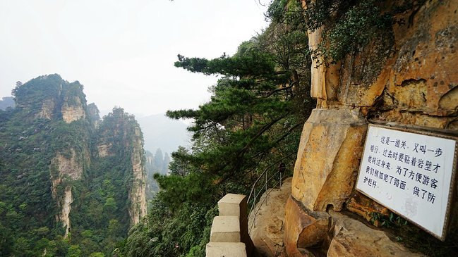 对面这个毫不起眼的石峰就是顶顶大名的乾坤柱,因为电影《阿凡达》电影而名声大噪。