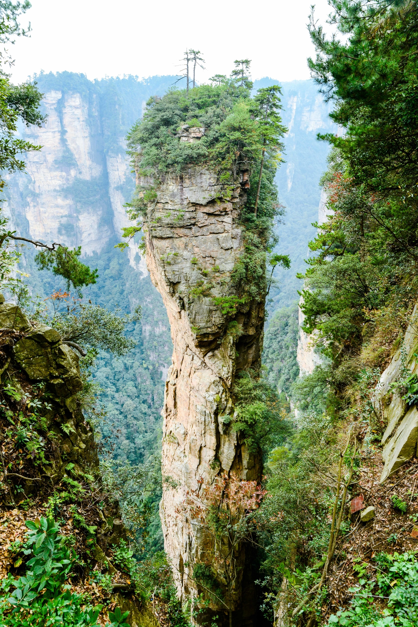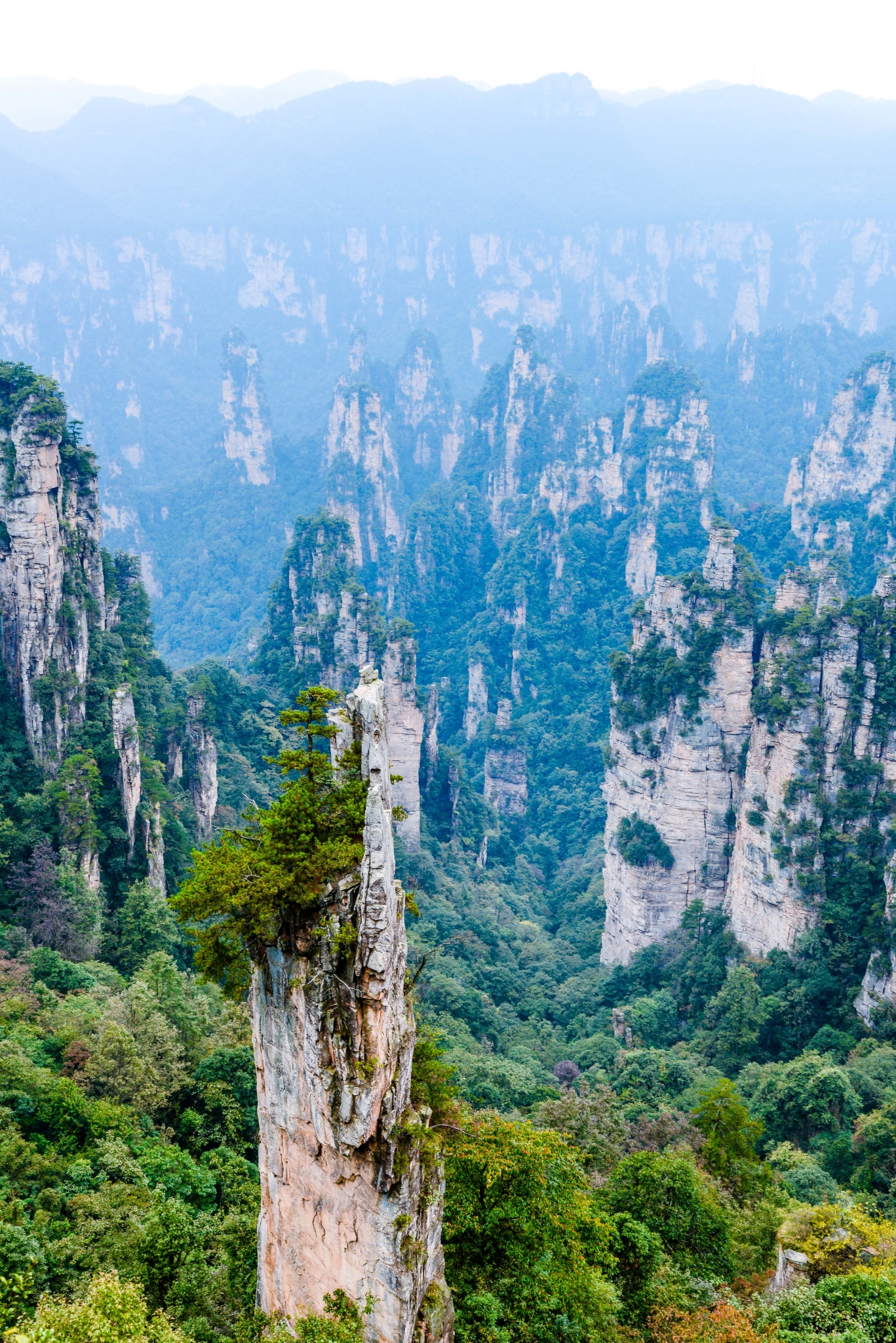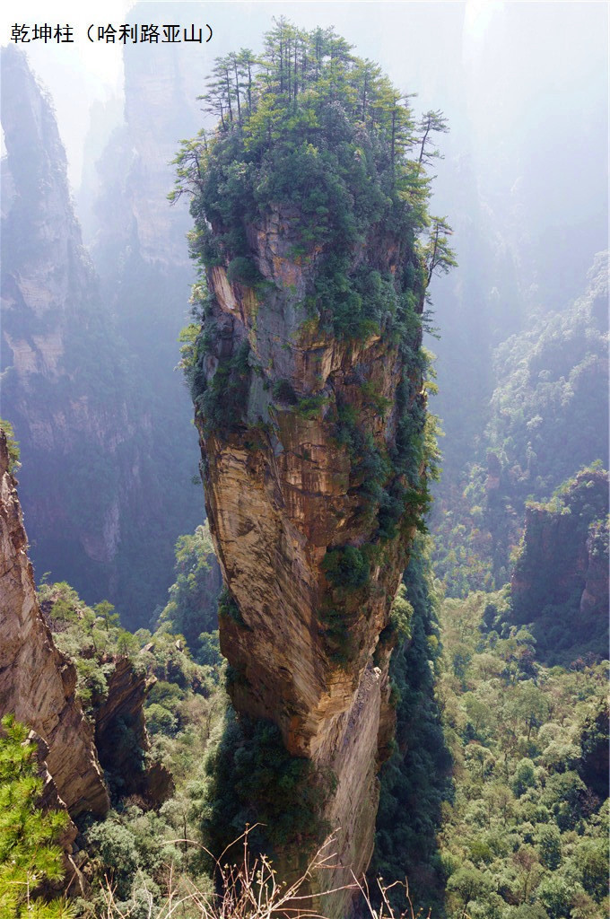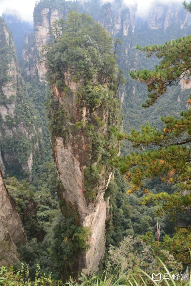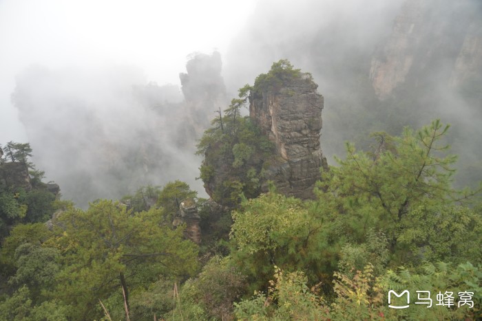 但说实话,这里要是没有云雾,是看不到那种群山漂浮、星罗棋步的玄幻莫测景色的,所以这里并不是哈利路亚山,而只是静静矗立着的南天一柱
