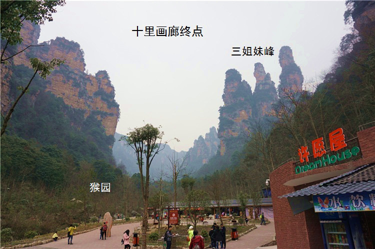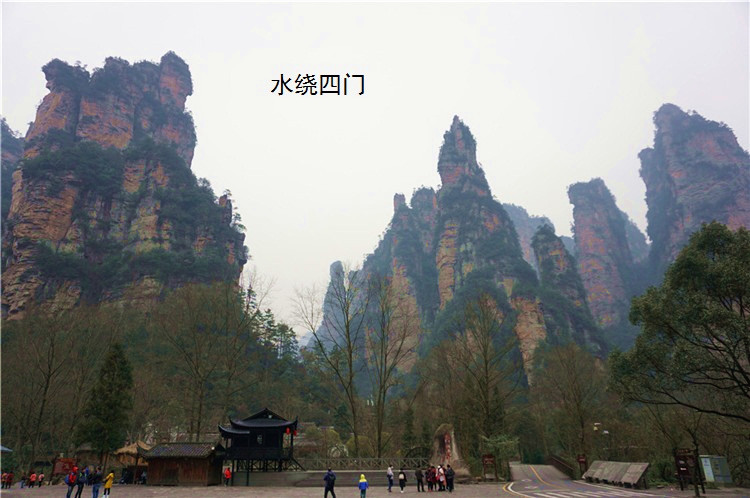 水绕四门分景区简介:十里画廊十里画廊位于索溪峪景区与天子山之间,全长5.8公里。两边林木葱翠,野花飘香;奇峰异石,绰约多姿,人行其间如画中游,故而得名。画廊两旁(主要在西侧)黛峰屏列,山上的岩石构成了许多尊似人似物、似鸟似兽的石景外型,其中以“寿星迎宾”、“食指峰”、“采药老人”、“三姐妹”等最为著名。不过十里画廊号称十里,实践开发路段却只要2公里。所以固然有小火车可供乘坐,全程徒步却也不累。景区最里面左侧有个猴园,里面的野猴甚是生动,游人可在此欣赏——但务必不要撩拨,最好也不要喂食,否则会引来不用要的费事——我就看到一位老妇拿着食物去喂猴子,结果被猴子一口咬住手指出了血——这可是得去打狂犬疫苗的,十分费事。