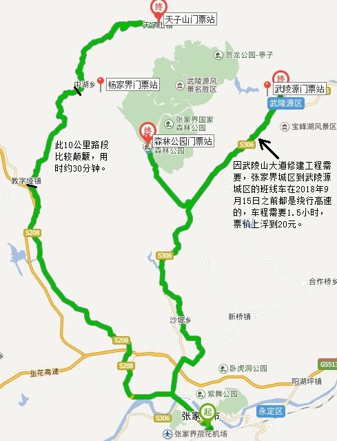 【小贴士】13:00-14:00从天子山到袁家界的空车较多,是从杨家界乌龙寨到袁家界最好机遇;16:00左右从袁家界到天子山的空车较多,是从袁家界到天子山的最好机遇。>>>环保车线路2条<<<梓木岗门票站——水绕四门——百龙天梯下站百龙天梯上站——后花园(袁家界)——迷魂台(袁家界)>>>游览线路引荐<<<Day1 梓木岗门票站——百龙天梯——袁家界——杨家界Day2 老屋场——天子山景区——天子山索道——十里画廊——标志门出Day3 森林公园(金鞭溪)——黄龙洞或者宝峰湖出行指南游完的,答案曾经了然于心了吧。揭晓答案了:问题:天子山景区与天门山景区是同一个中央吗?答案:当然不是。天门子山景区是中心景区内的景区之一,购置门票进入;天门山景区位于西南面,是单独的景区,购置天门山景区门票入内,天门山景区有天门洞和玻璃栈道。问题:玻璃栈道与玻璃桥是在同一景区吗?答案:当然不是。玻璃桥是一座桥,玻璃透明的桥面,横跨在峡谷之间,位于市东北面的大峡谷景区内。玻璃栈道贴着崖壁建造,玻璃的通道,位于市东南面的天门山景区内。如何抵达景区中心汽车站搭乘前往景区的大巴。汽车站分别有发往森林公园门票站(20分钟一班,车程约1小时)、门票站(20分钟一班,车程约1小时15分钟)和天子山门票站(中途路经杨家界门票站,车次较少,约1小时1班,车程1.5小时)的巴士。【小贴士】中心汽车站位于火车站左近,步行5分钟的间隔。【飞机】荷花国际机场 | 地址:湖南省市永定区官黎坪办事处荷花村机场官网机场周边交通 | 公交车4路(6:00—19:00),此车为环线(飞机场——汽车站——天门山索道——飞机场),上车前请于司机确认目的地。【小贴士】在汽车站搭乘公交5路,能够前往中心汽车站。【火车、汽车】火车站 | 地址:湖南省市永定区官黎坪中心汽车站 |地址: 湖南省市永定区官黎路(官黎坪新火车站旁)| 公交5路车站周边交通 | 公交4、6、10路经过火车站、天门山索道。由飞机场、火车站、中心汽车站前往景区办法出租车 | 费用视目的地而定。白昼到市区大约15-20元,晚上30元左右,但司机通常不打表,需求谈好价钱;假如想直接到景区,价钱就会比拟贵,在100元左右。【内部交通】有免费的环保车搭乘,还有收费的索道、小火车与电梯,分别是百龙天梯、天子山索道、黄石寨索道、杨家界索道、十里画廊小火车。前往黄龙洞和宝峰湖,能够在标志门搭乘公交1、2路。【的住宿引荐】包括景区、天门山景区、大峡谷景区,假如行程包括天门山,能够思索住宿在市内,这里有便当的公交车前往天门山景区。假如以玩耍中心的景区为主,引荐住宿在标志门溪布街左近,这里餐饮住宿集中,十分繁华,而且住宿条件较好,标志门入口进入也很便当。