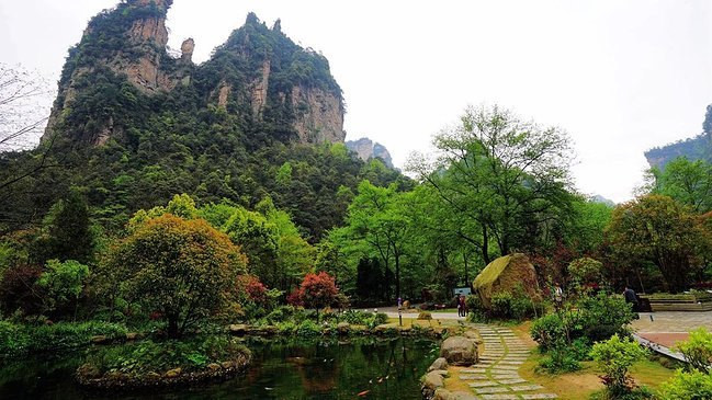 图片来自网络!天下山有:贺龙铜像,御笔峰,仙女散花等景点,游完天下山下午可以坐摆渡车到天下山索道上站,坐索道下山,索道下站有摆渡车直接到达大门口。