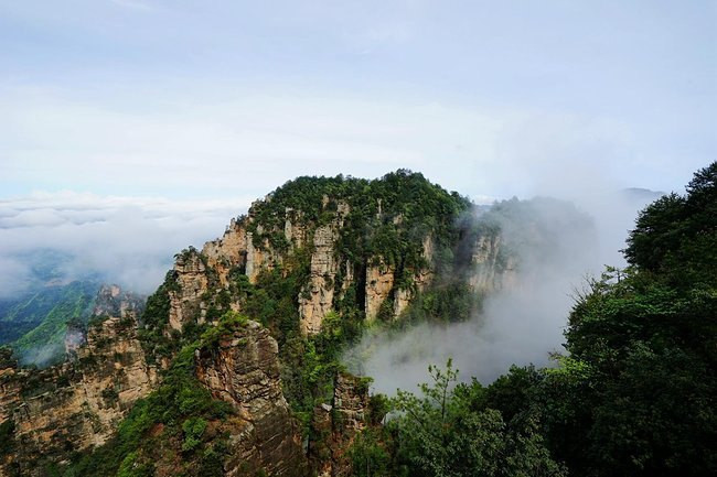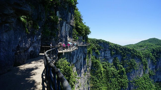 这里本身的景色就很美,一排排峰墙,相对平行而立,高矮参差不齐,雄奇壮观,神似天然长城,不得不让人惊叹大自然的劈山开地之功杨家界除了最著名的景点是乌龙寨和天波府,还有五郎拜佛、一步登天、空中走廊、龙泉飞瀑、绝壁藤王、白鹤聚会等很多景点,虽然不是代表性的景点,但也都是各有特色,只不过路比较远,一般游客很少过去,有兴趣的可以去看看。