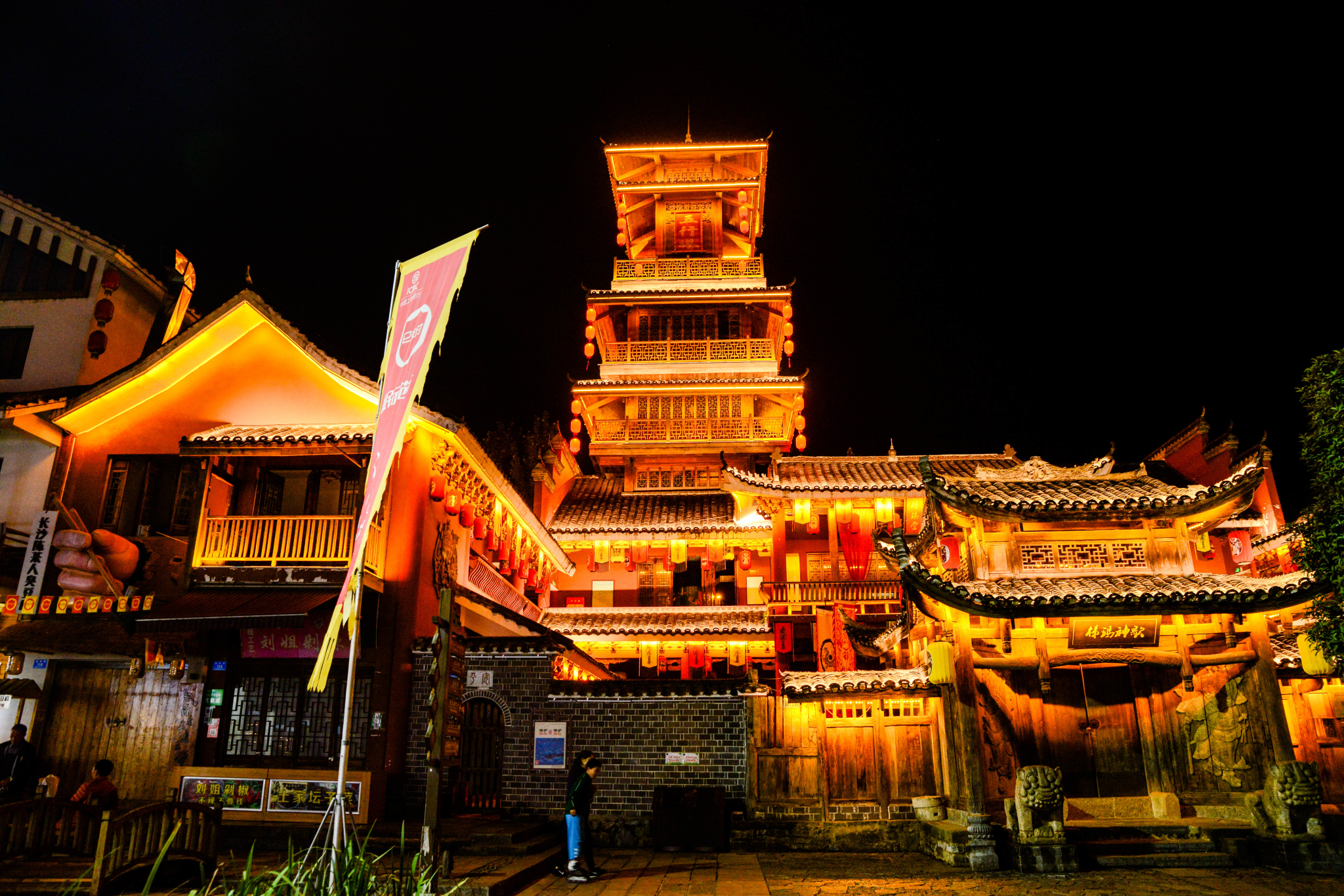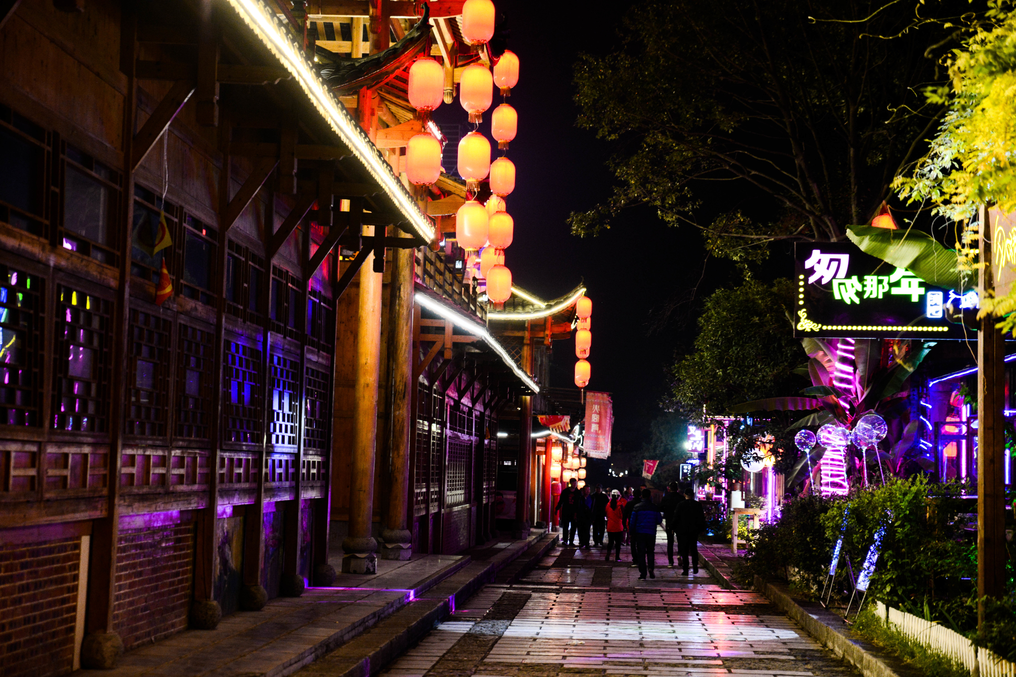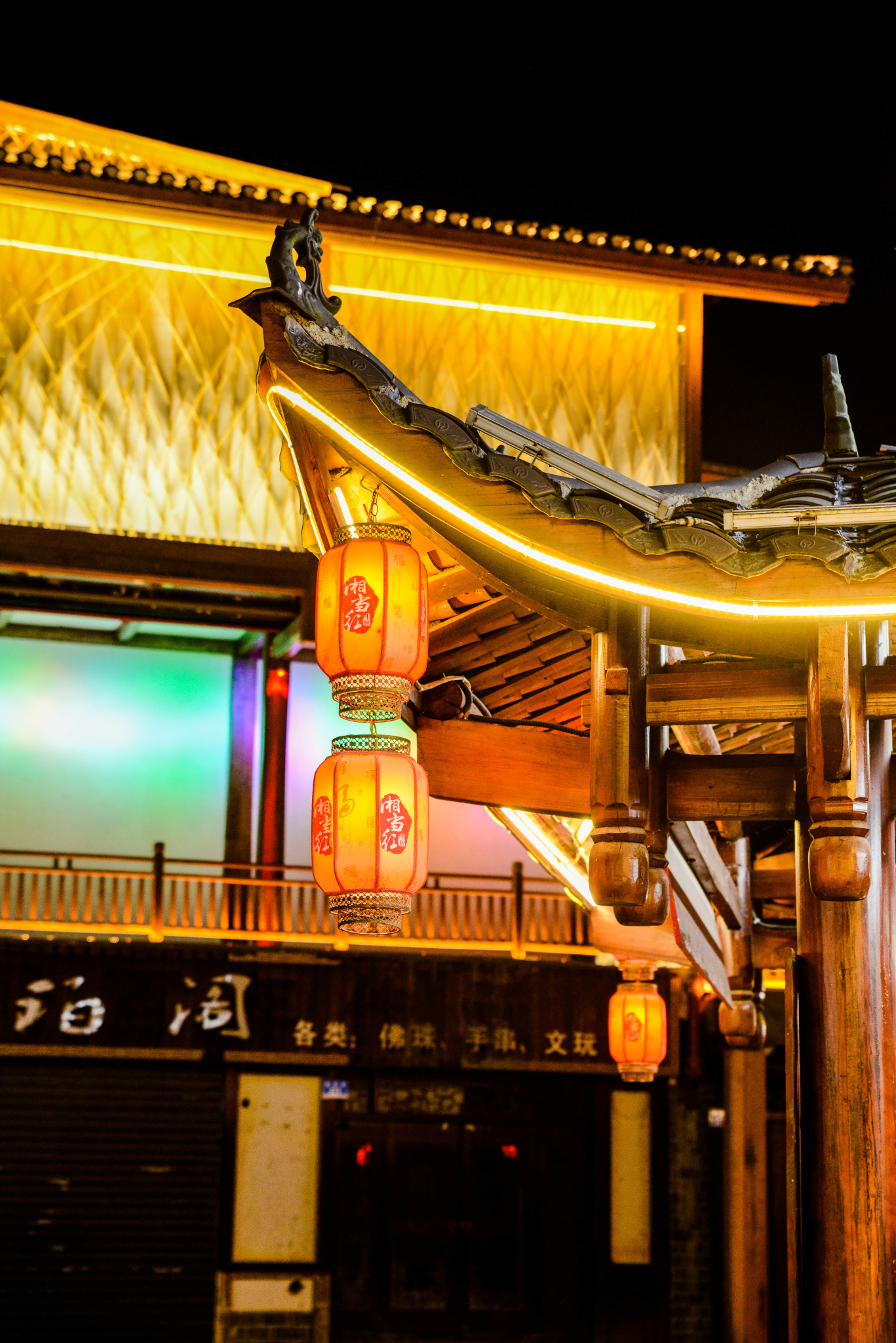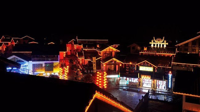 夜幕走在热闹的古镇里,古典与现代的结合,越加的迷人。几人有说有笑,拍照留影,忙着不停。