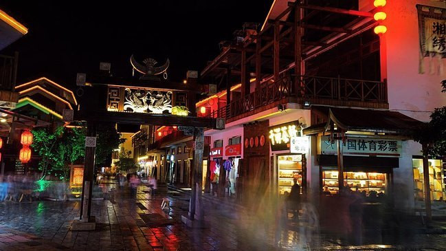 长穗灯笼三层高,把酒临风叙往日。在溪布街找了间清吧,坐在靠溪的一边,和朋友一起喝了杯酒,聊起了过往,好生惬意。溪布街,一个充满遐想的民族殿堂,有着浓厚的土家风俗人情。路过一些名特产工坊,里面的店员身穿土家民族服饰,进去逛了一圈,买了点当地的手信,想把这份异乡情愫寄往归途。