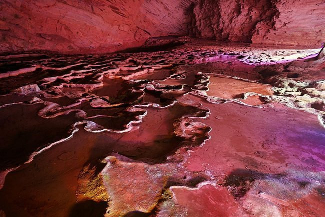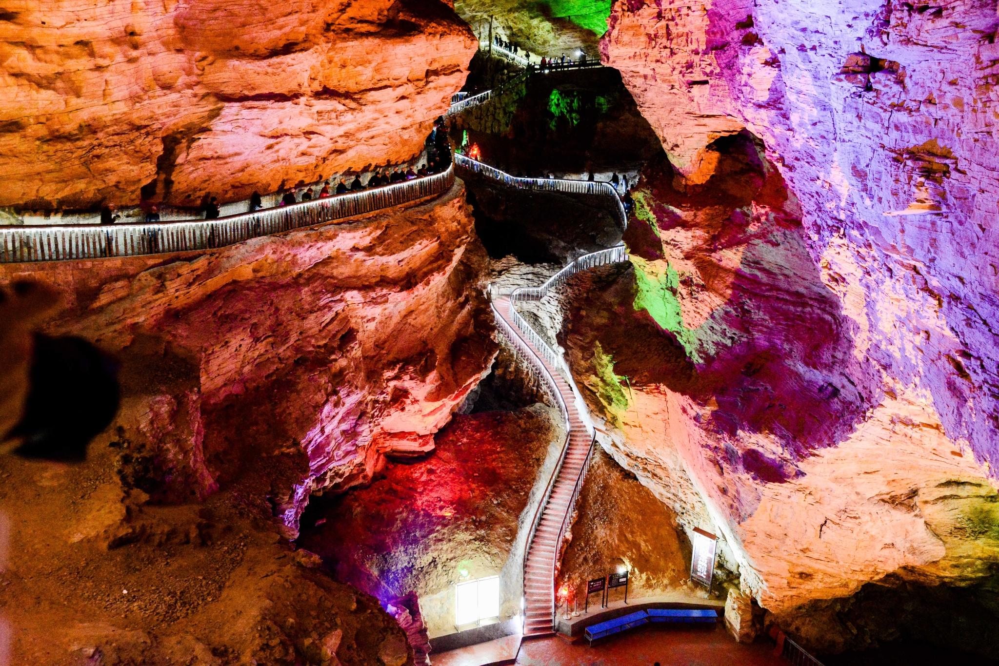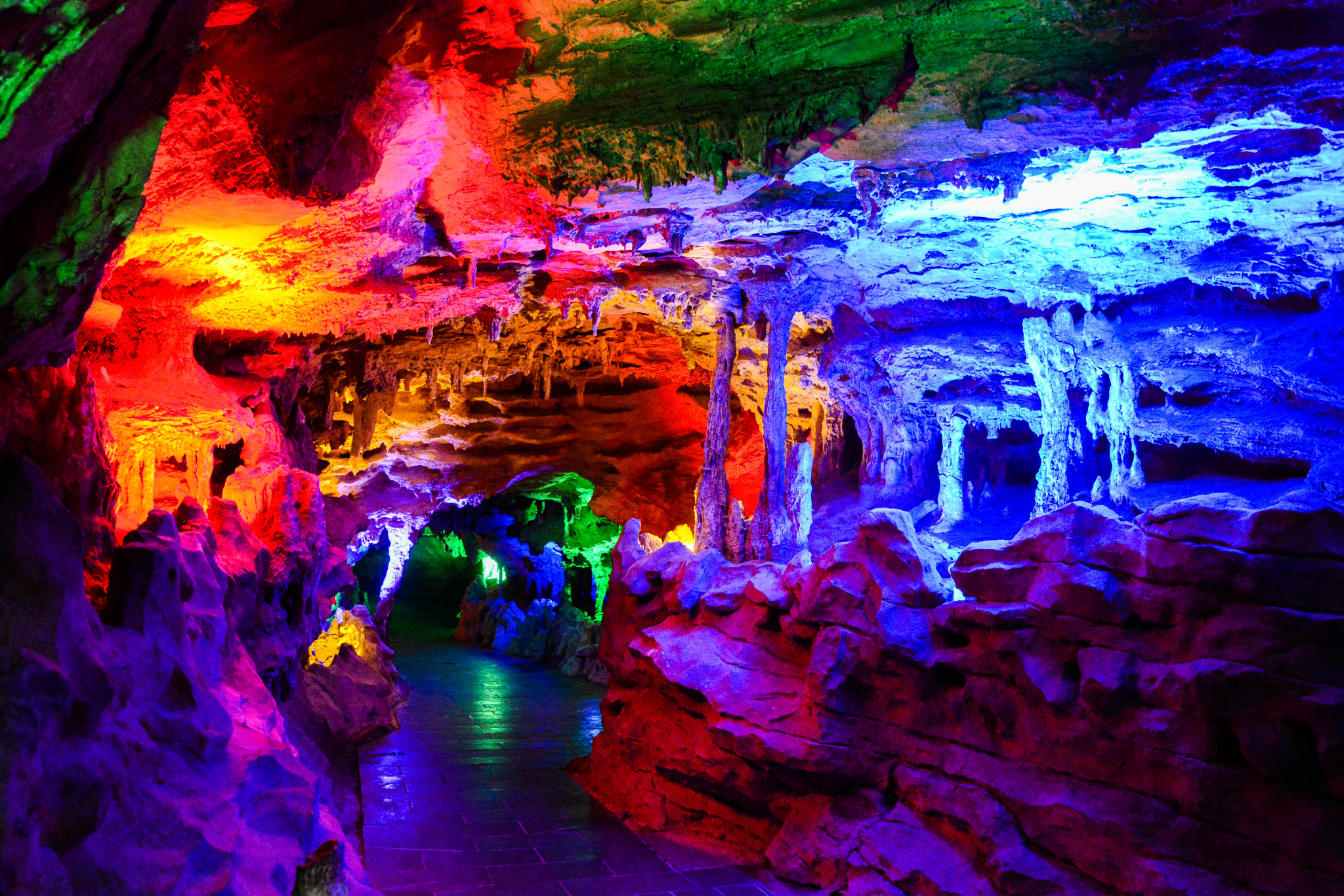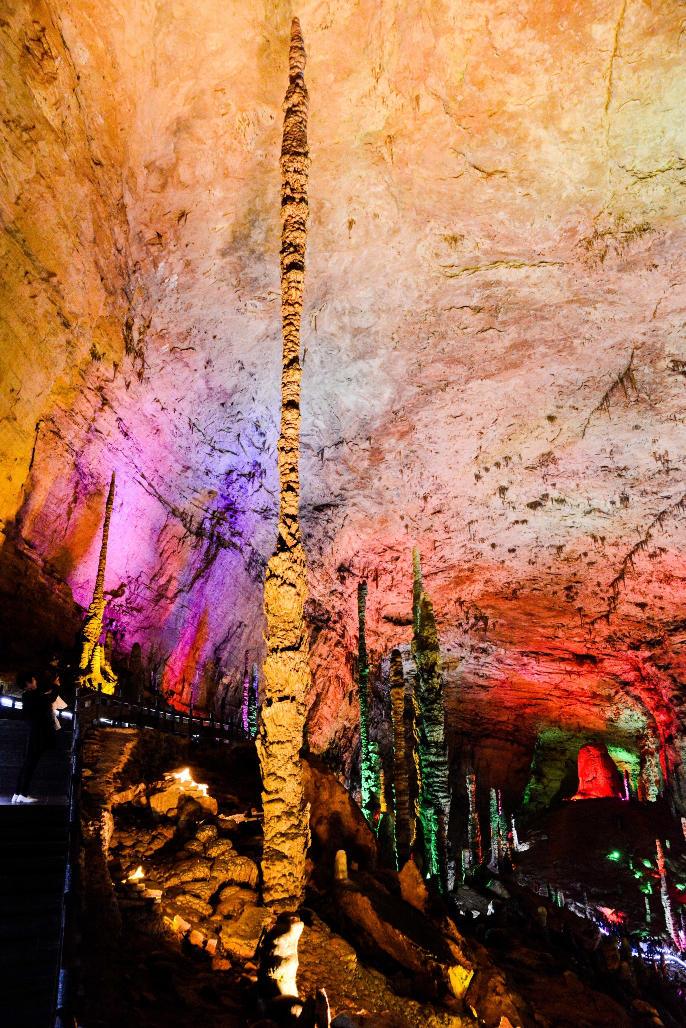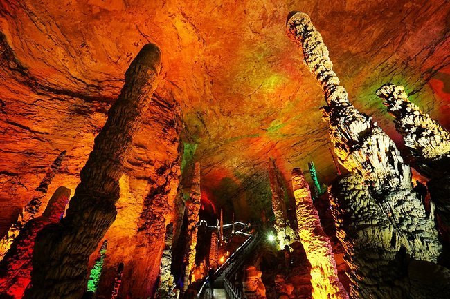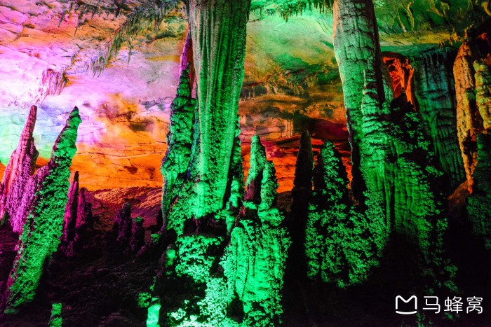刚走到里面,就被里面五彩缤纷的世界震撼。一个个石钟乳在灯光下,散发出自己的魅力。