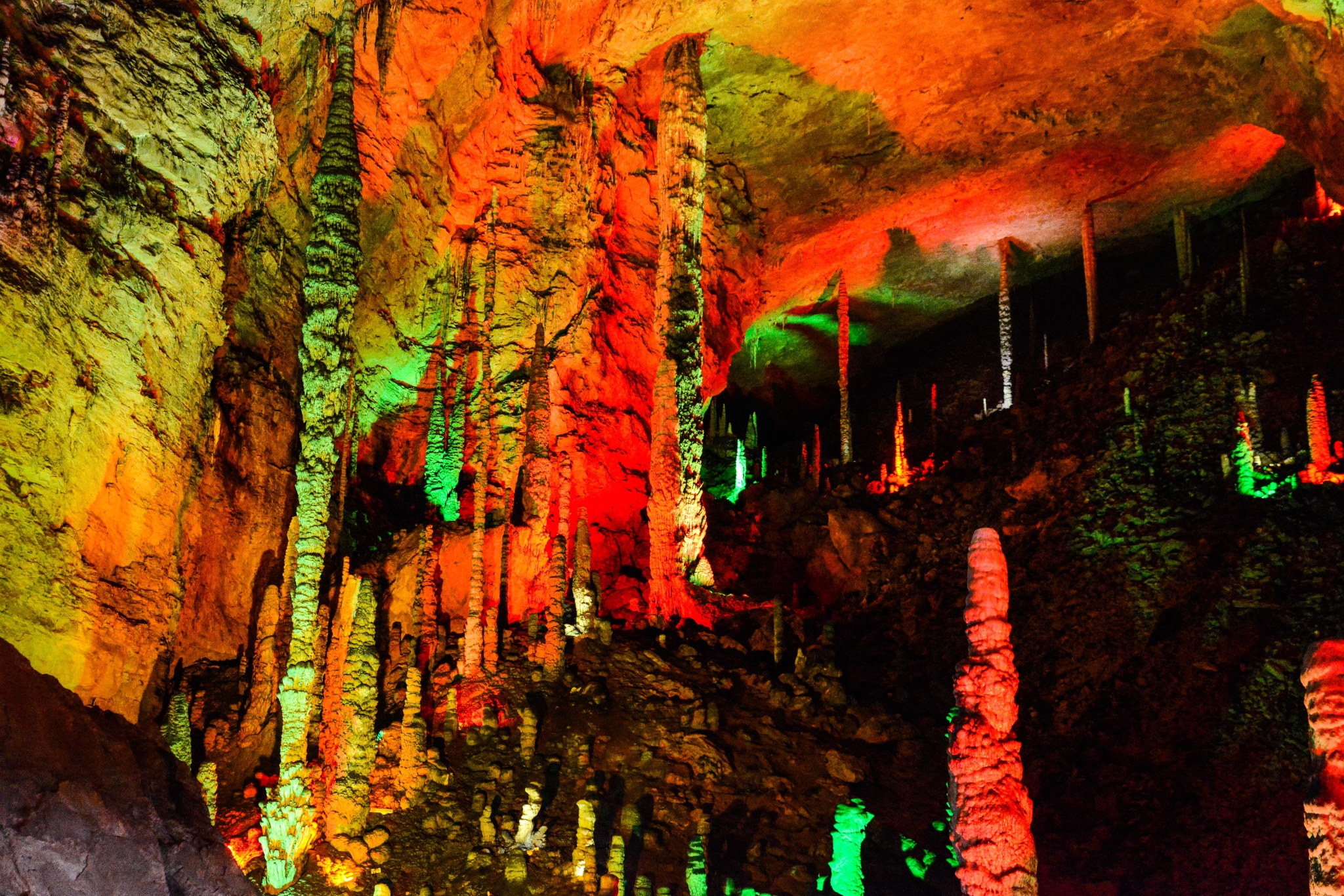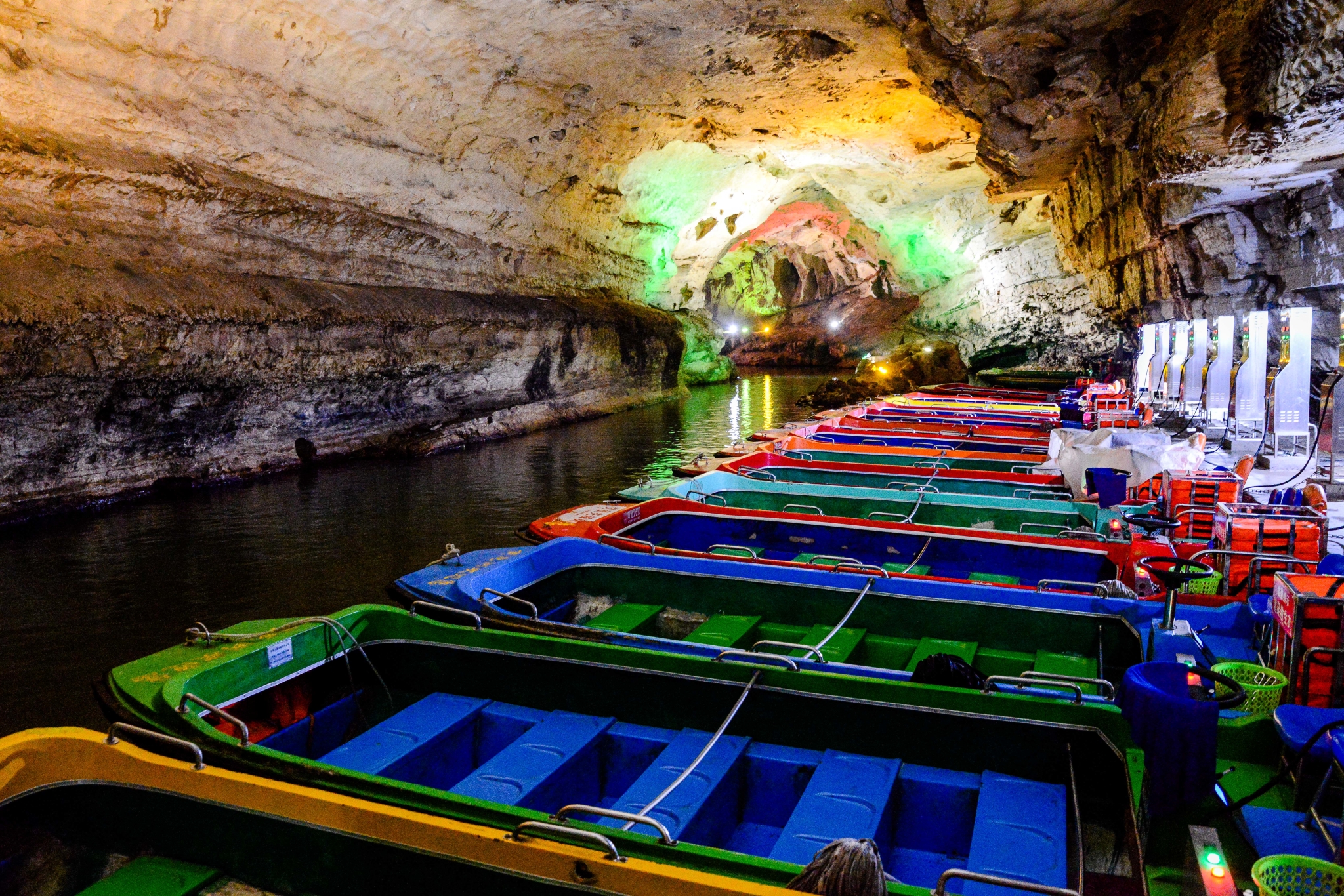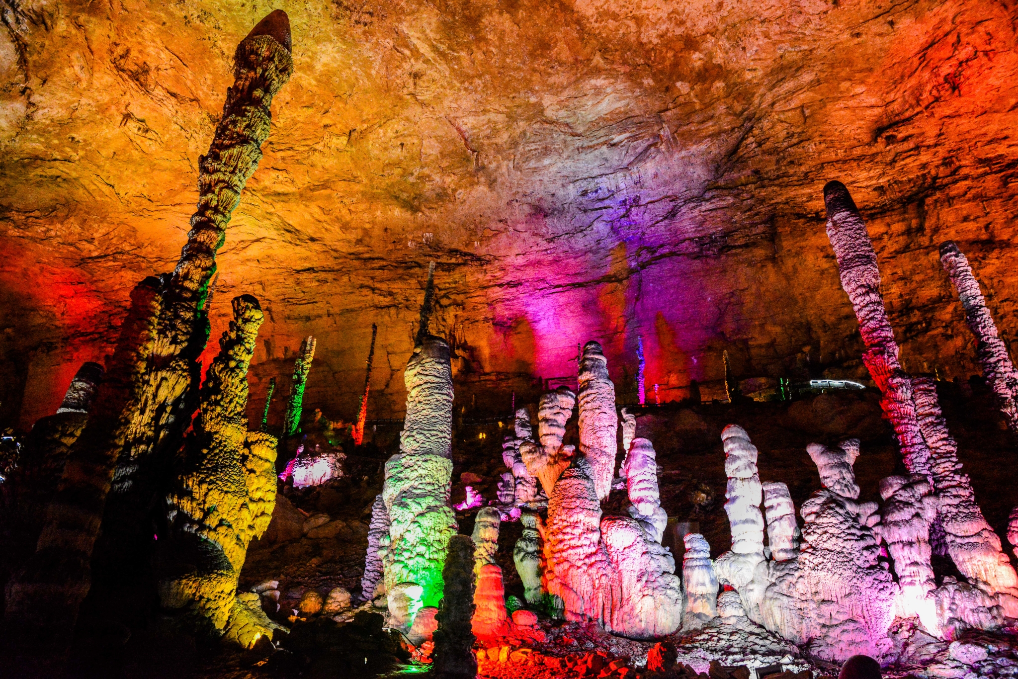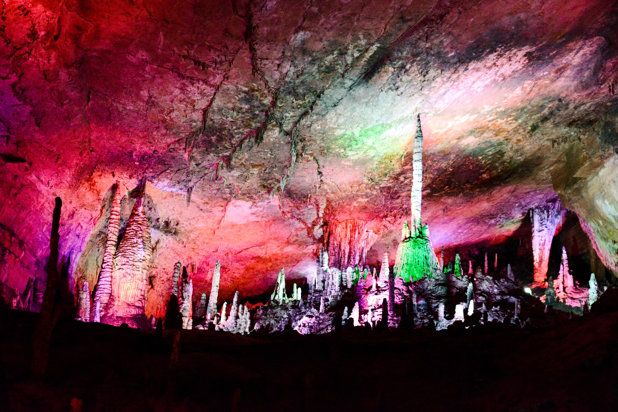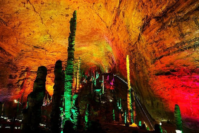 各种不同的石钟乳有大有小,在不同的灯光下,五彩斑斓,异常好看。拥有着几万年历史的见证者,在我们面前揭开面纱。