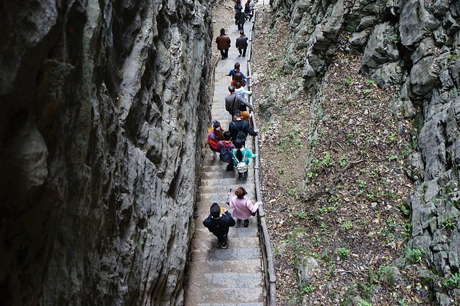 一步登天过一步登天约5分钟有一岔路,右侧斜上便是去空中走廊的路——或者说这条路就叫做“空中走廊”。
