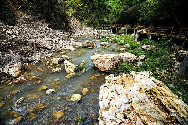 路上还有一些石头组成的路,如棋子的石头,一不小心都有可能掉到溪水中。到是有几分小危险。可惜现在有些凉,没人在溪水中游玩。