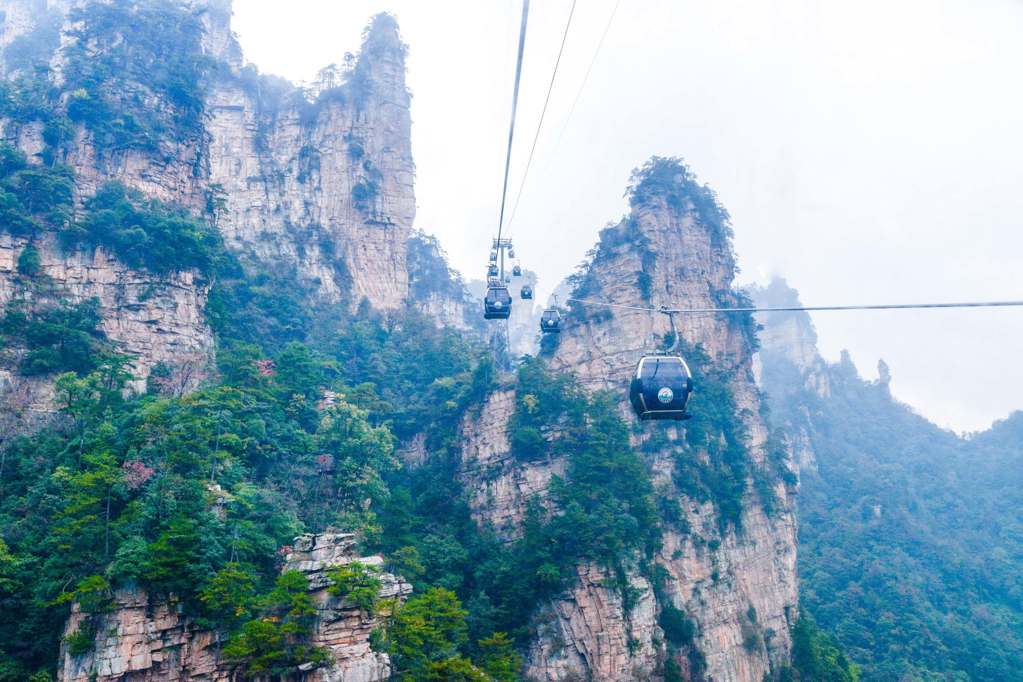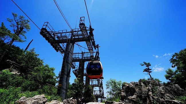 穿梭于山峰之间的索道,犹如漫步云端,更加近距离看到旁边的山峰上的景色。