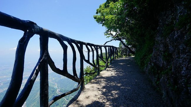 1是节省时间2是保存体力,上行时会看到9曲18弯,下了缆车沿路游玩至——玻璃栈道(门票5元包括鞋套,所以不要在山下买鞋套)