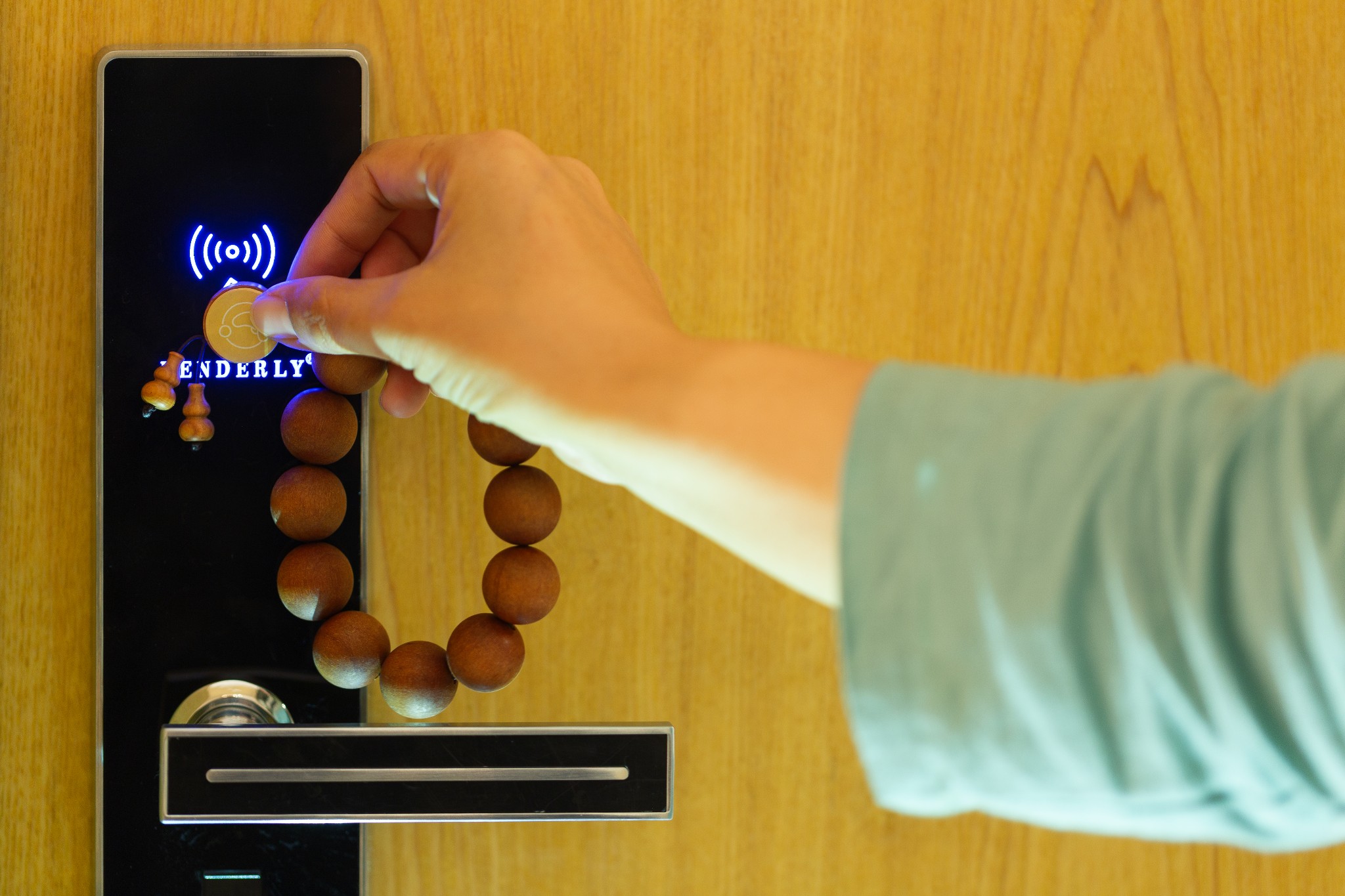 跟随前台,手持佛珠,用它打开原木的房门,走进的瞬间,心一点一点的欢喜跳跃起来。