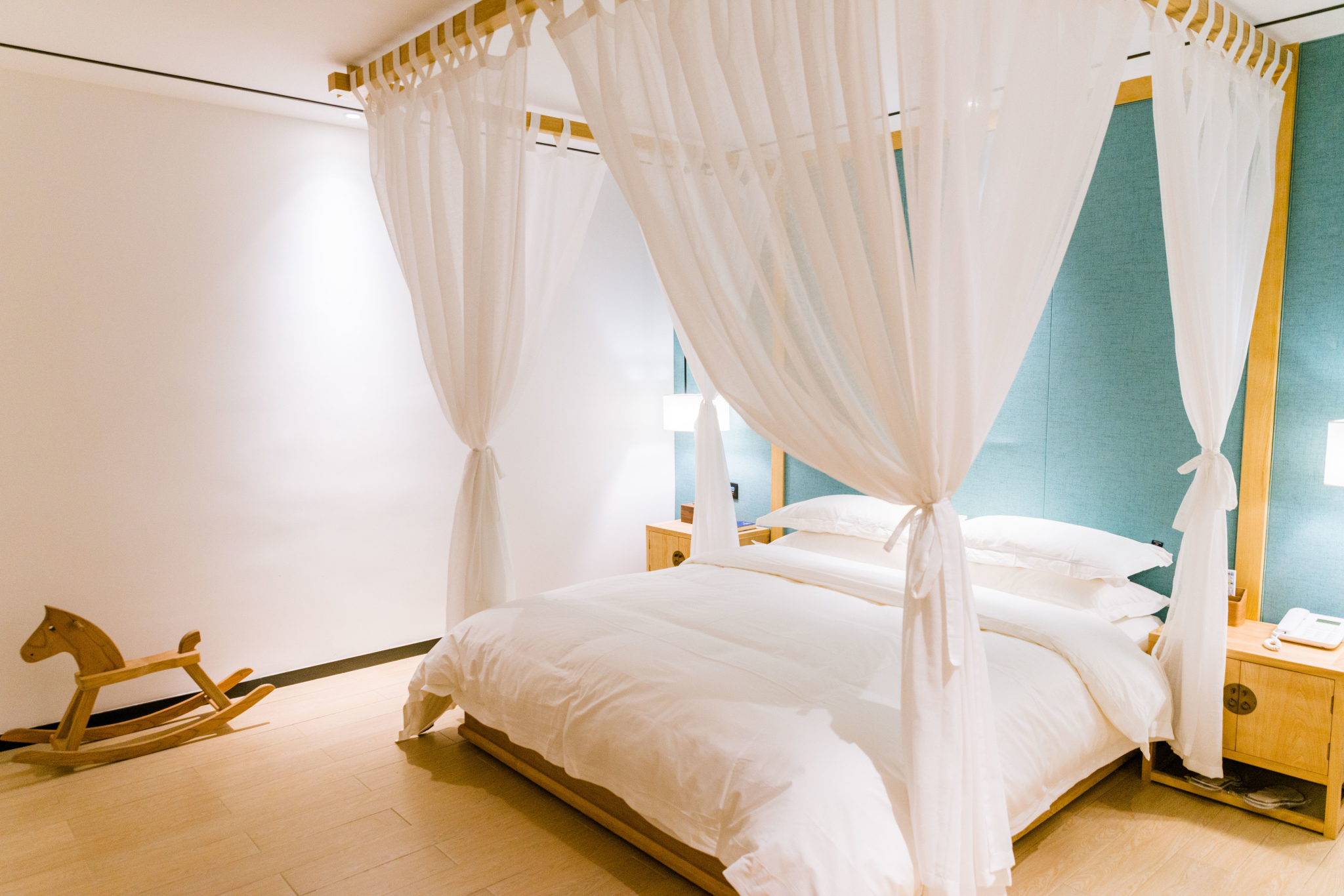 我们住的是见法阁复式套房,古味十足的床是整个房间的亮点,仿照古代床帷幔的设计样式,有机棉麻混纺材料的床垫,搭配柔软的被套,房间飘散着阵阵自然芳香,躺在床上,分分钟陷进温柔的梦乡。