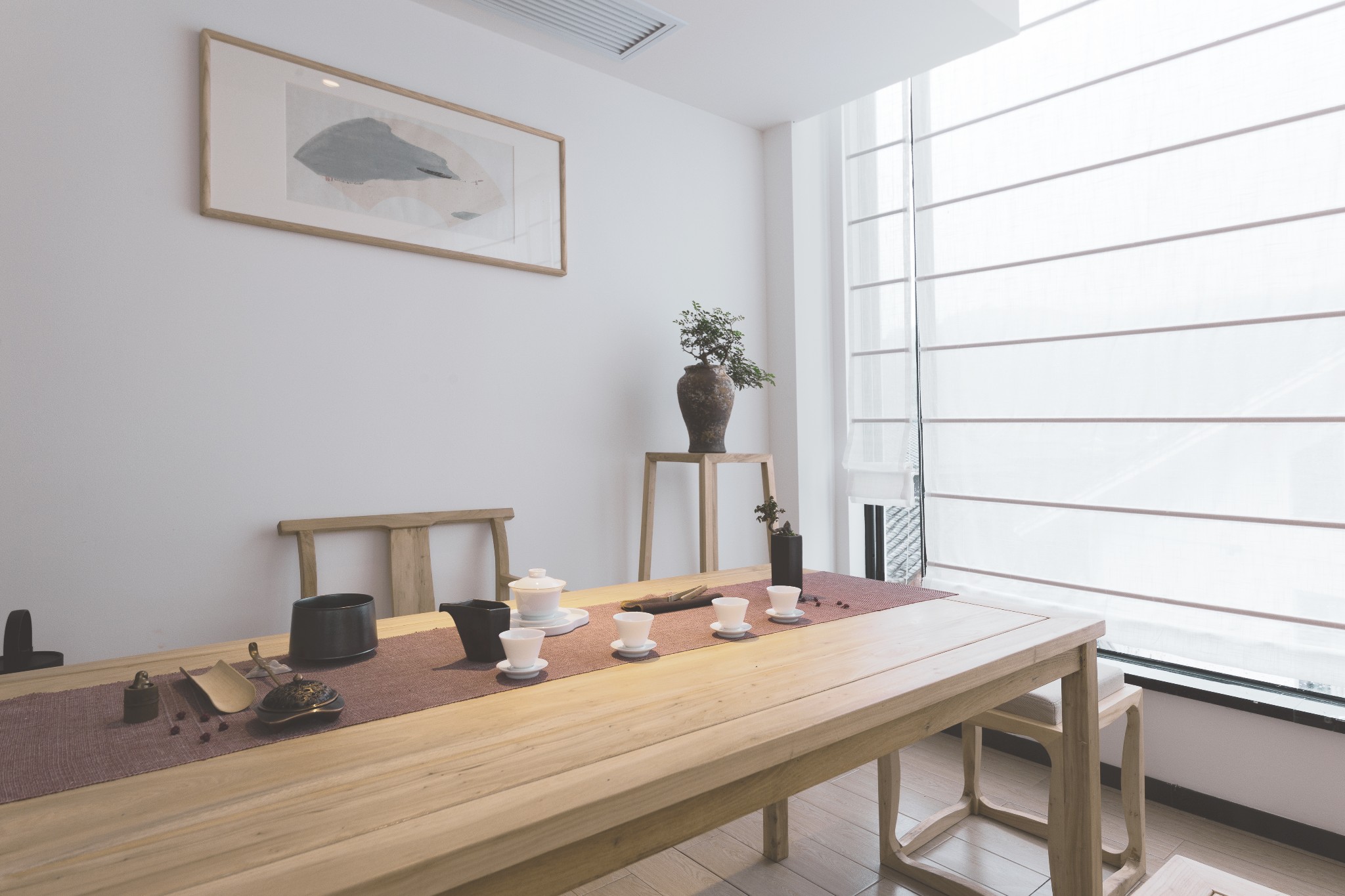 不仅每个房间都配有茶几,酒店还设有专门的茶室,素如积雪的茶杯,温润通透的茶汤,浅酌慢品,禅茶一味,心外无物,一切都是那么从容自在。